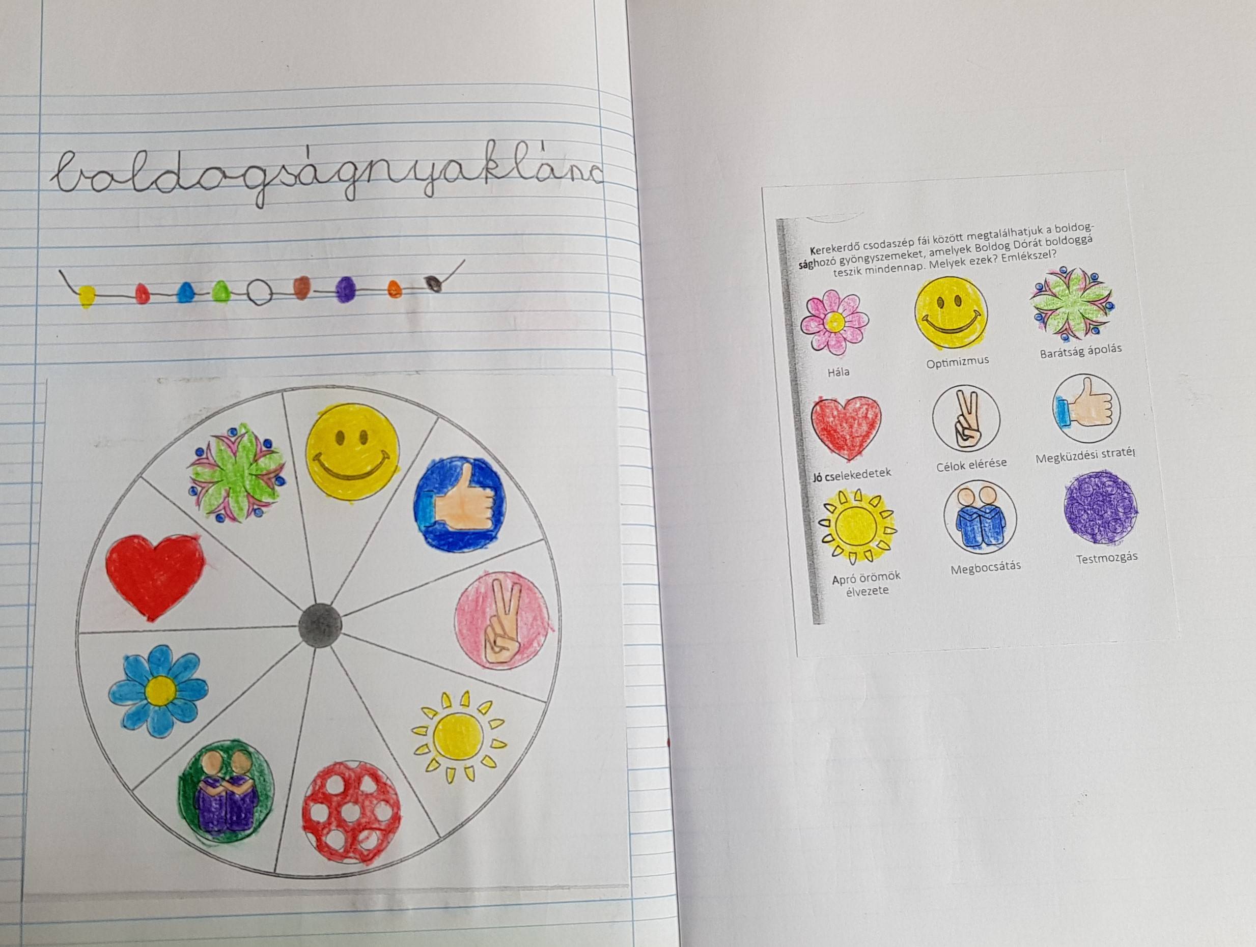 A Kerekerdő mese segítségével áttekintettük a hónapok témáit. Kiszíneztük a gyöngyszemeket, elkészítettük a boldogság kerekét.