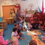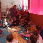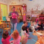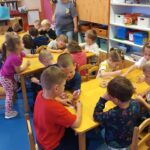 A gyerekek már vár nagyon várták Boldog Dórát, aki hozott nekik finom almát, amit az óra végén meg is ehettek a gyerekek. De előtte még játszottunk egy kicsit Add tovább játékot, ahol az adogatás közben a „Itt a köcsög” mondókat mondogattuk. Miután megláttuk a kibújó Nap sugarát a Napimádás relaxációt játszottuk el és közben a „Nap, nap fényes nap” mondókat mondogattuk. Boldog Dóra a „ Boldog vagyok” dalt hozta el nekünk, amelyre táncoltunk is. Majd megbeszéltük, hogy miért lehettünk hálásak a különböző dolgok közül. Játszottunk a Kire gondoltam játékot, ami után egy ölelés következet. Itt megbeszéltük a barátság fontosságát, amiért szintén hálások lehetünk. A Macis mese után beszélgettünk a hála fontosságáért és kiszíneztük a hála jelét. Majd készítettünk egy hála kertet a szülőknek. A legvégén pedig még táncoltunk a mosolygos smiley alatt.