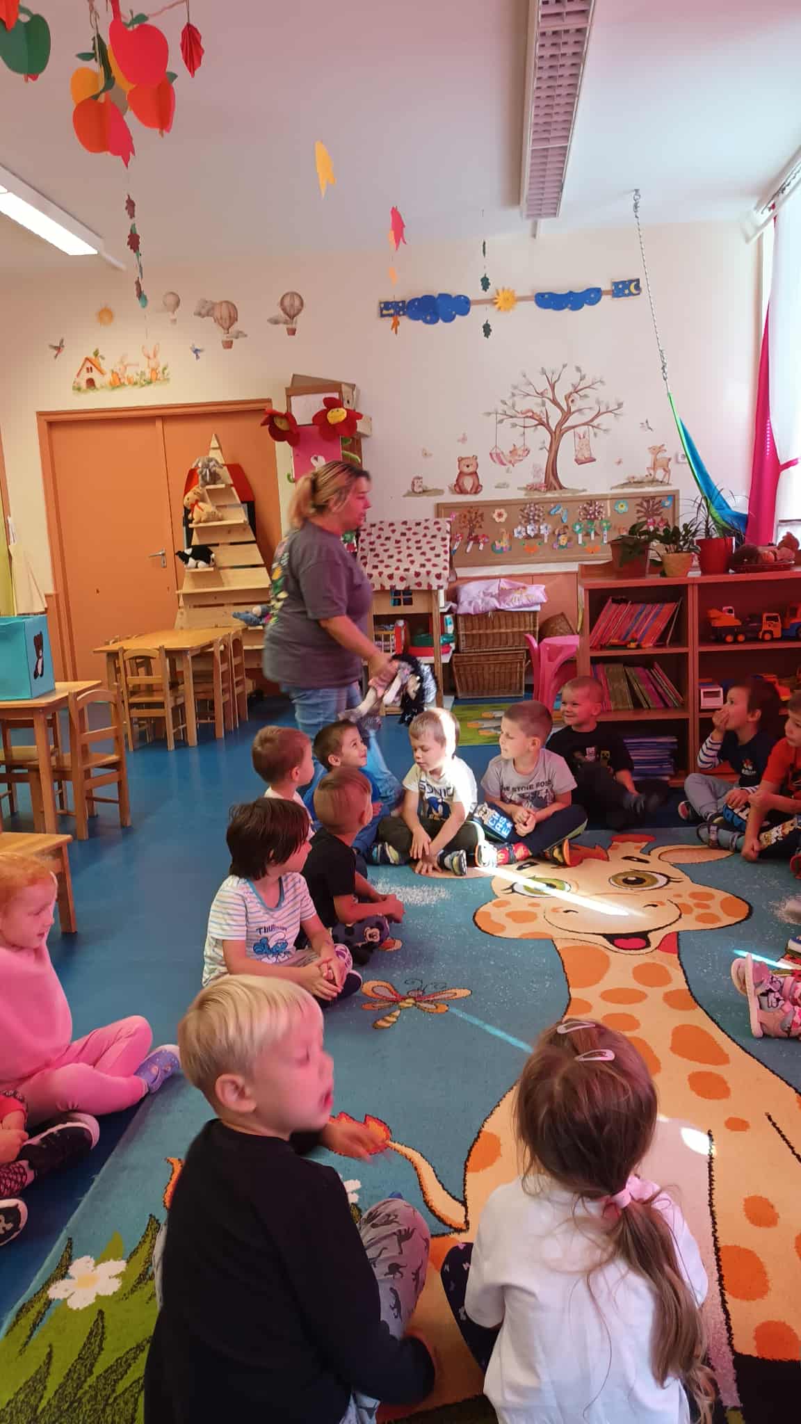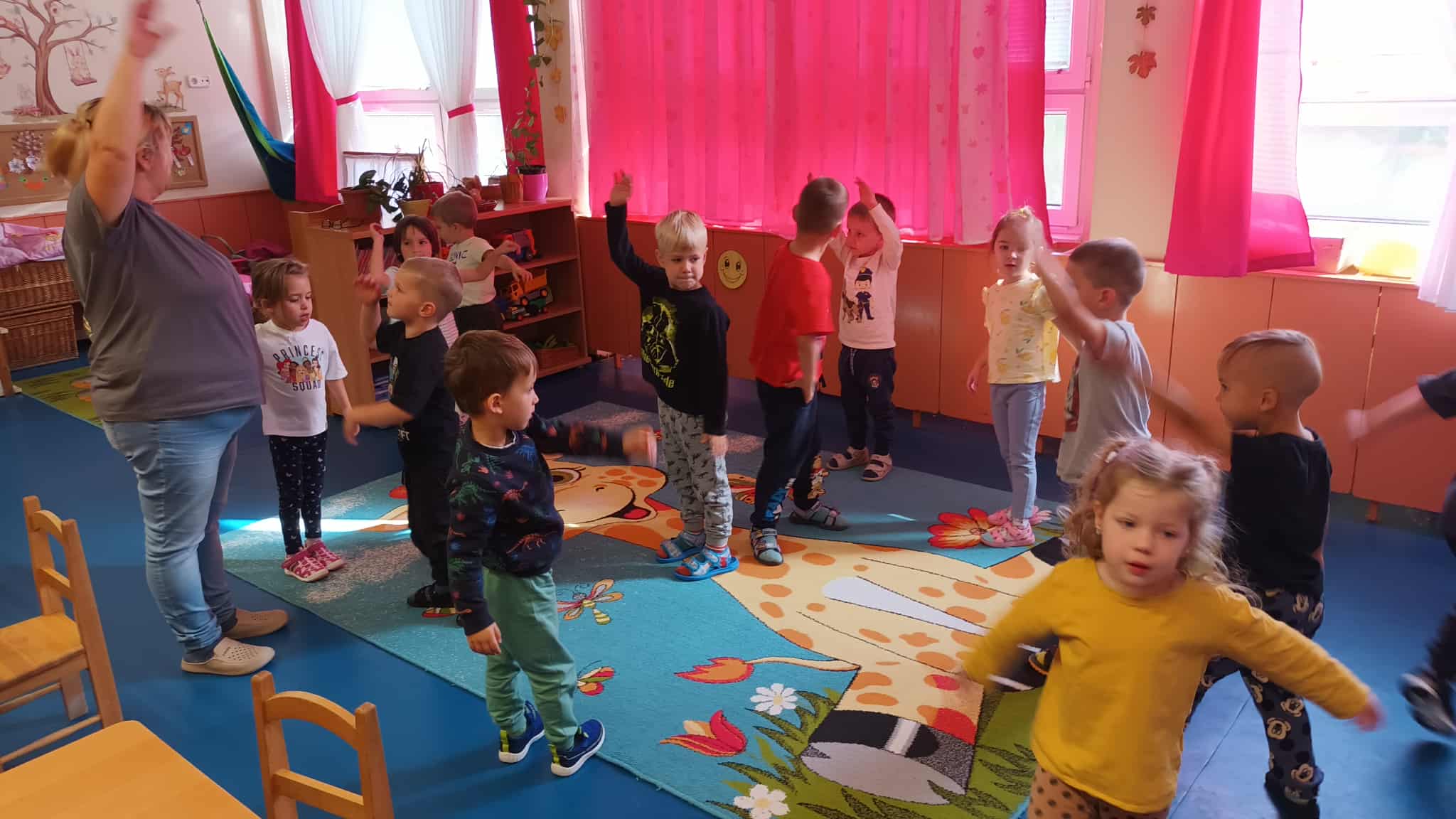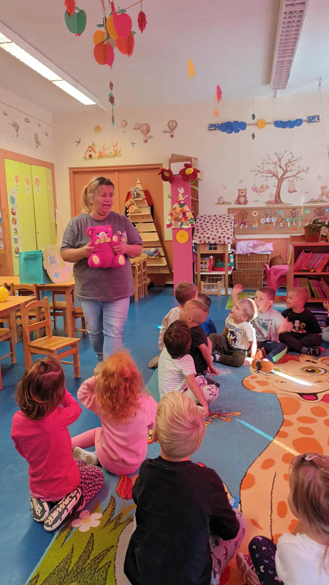 A gyerekek már vár nagyon várták Boldog Dórát, aki hozott nekik finom almát, amit az óra végén meg is ehettek a gyerekek. De előtte még játszottunk egy kicsit Add tovább játékot, ahol az adogatás közben a „Itt a köcsög” mondókat mondogattuk. Miután megláttuk a kibújó Nap sugarát a Napimádás relaxációt játszottuk el és közben a „Nap, nap fényes nap” mondókat mondogattuk. Boldog Dóra a „ Boldog vagyok” dalt hozta el nekünk, amelyre táncoltunk is. Majd megbeszéltük, hogy miért lehettünk hálásak a különböző dolgok közül. Játszottunk a Kire gondoltam játékot, ami után egy ölelés következet. Itt megbeszéltük a barátság fontosságát, amiért szintén hálások lehetünk. A Macis mese után beszélgettünk a hála fontosságáért és kiszíneztük a hála jelét. Majd készítettünk egy hála kertet a szülőknek. A legvégén pedig még táncoltunk a mosolygos smiley alatt.