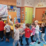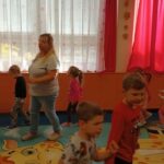 A gyerekekkel nagyon jó hangulatban kezdtük a foglalkozást, Boldog Dóra is táncolt, hiszen „Ha jó a kedved üsd a tenyered” mozgásos dalt énekeltük, táncoltuk el. Majd „szerető falevelek” voltunk és egymásnak adtuk át a falevelet , akivel a legjobban érezzük magunkat. Aztán „Rongybabák”-ként feküdtünk le a szőnyegre és újból táncoltunk Bagdi Bella Pozitív gyerek vagyok dalára. Ezt a jó hangulatot tovább véve játszottunk egyet. A feladat a képeket a megfelelő smile alá kellett tenni. Megbeszéltük, hogy mi mindannyian nagyon ügyesek és boldogok vagyunk, hisz mindent megtudunk tenni, ha kitartóak vagyunk akkor, minden akadályt le tudunk győzni és mind e közben mindenben megtalálhatjuk a jót. Mesénk a Az aranyos tarajos kiskakas volt, amelyet megbeszéltünk. Utána egy akadálypálya várt ránk, amelynek a teljesítése után a mosolygos smile volt a jutalmunk. Miután kiszíneztük még táncoltunk a végén, illetve a zene elhalkulásával akit a legjobban szeretünk megöleljük.