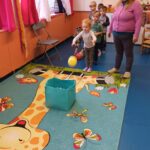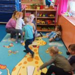 Relaxációs gyakorlatunk az „Összehangoló” volt jól ismert mondókára meneteltünk. Majd célba dobtunk és megbeszéltük a képek segítségével, hogy milyen céljaink lehetnének, amit elérhetnénk. Megbeszéltük, hogy sosem szabad feladni semmit sem. Majd „ A nyúl és a teknős” című mesét meséltem el plüssök segítségével. Amelynek megbeszéltük a tanulságát: A lassú és kitartó munka elnyeri jutalmát! Játszottunk „ Hideg-meleg” játékot ahol a teknős plüsst rejtettük el. Ez nagyon tetszett a gyerekeknek. Kiszíneztük a Célok elérése és kitűzése jelet. Majd közben hallgattuk „ Van nekem egy álmom” dalt. Készítettünk a szülőknek „Vágyak fáját”, ahol mindenki választott egy képet amit elszeretett volna érni és azt kiszínezte, ezeket pedig felakasztottuk egy ágra és kitettük az öltözőbe. A végén pedig egy közös öleléssel körbe vettük Boldog Dórát.