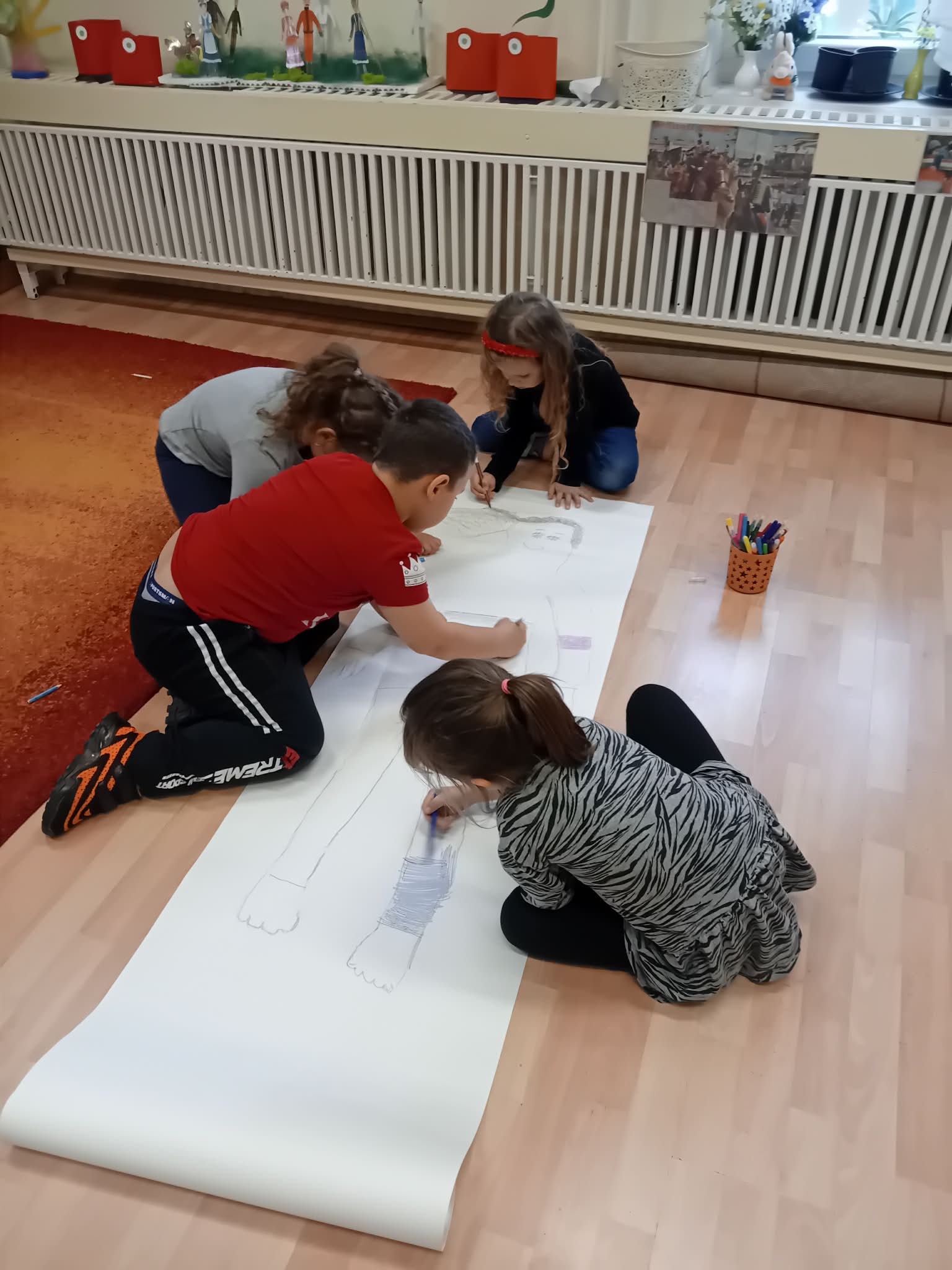 Örömke választása során rögtön volt jelentkező gyermek, akit társai körberajzoltak.