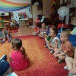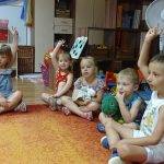 Ezután elmeséltem a Boldog erdő-Kerek erdő mesét, a gyerekek nagyon figyeltek mese közben, ismerős szavakat hallottak. A mese végén felidézték, melyek azok a témák, amelyeket a mesében is hallottak és amikről a Boldogságórákon is beszélgettünk. Felidézték az emlékeket, élményeket. Ezután elővettem a „Boldogságóránkat”, mindenki elmondta, hogy melyik a kedvenc Boldogságóra témája, majd mondott hozzá egy kedves élményt is. Megtanultak egymásra figyelni, csendben hallgatták egymás mondani valóját. Ezután Bagdi Bella-tól hallgattuk, énekeltük, a kedvenc zenéjüket, amely közben táncoltak vagy saját Boldogságórát készítettek.