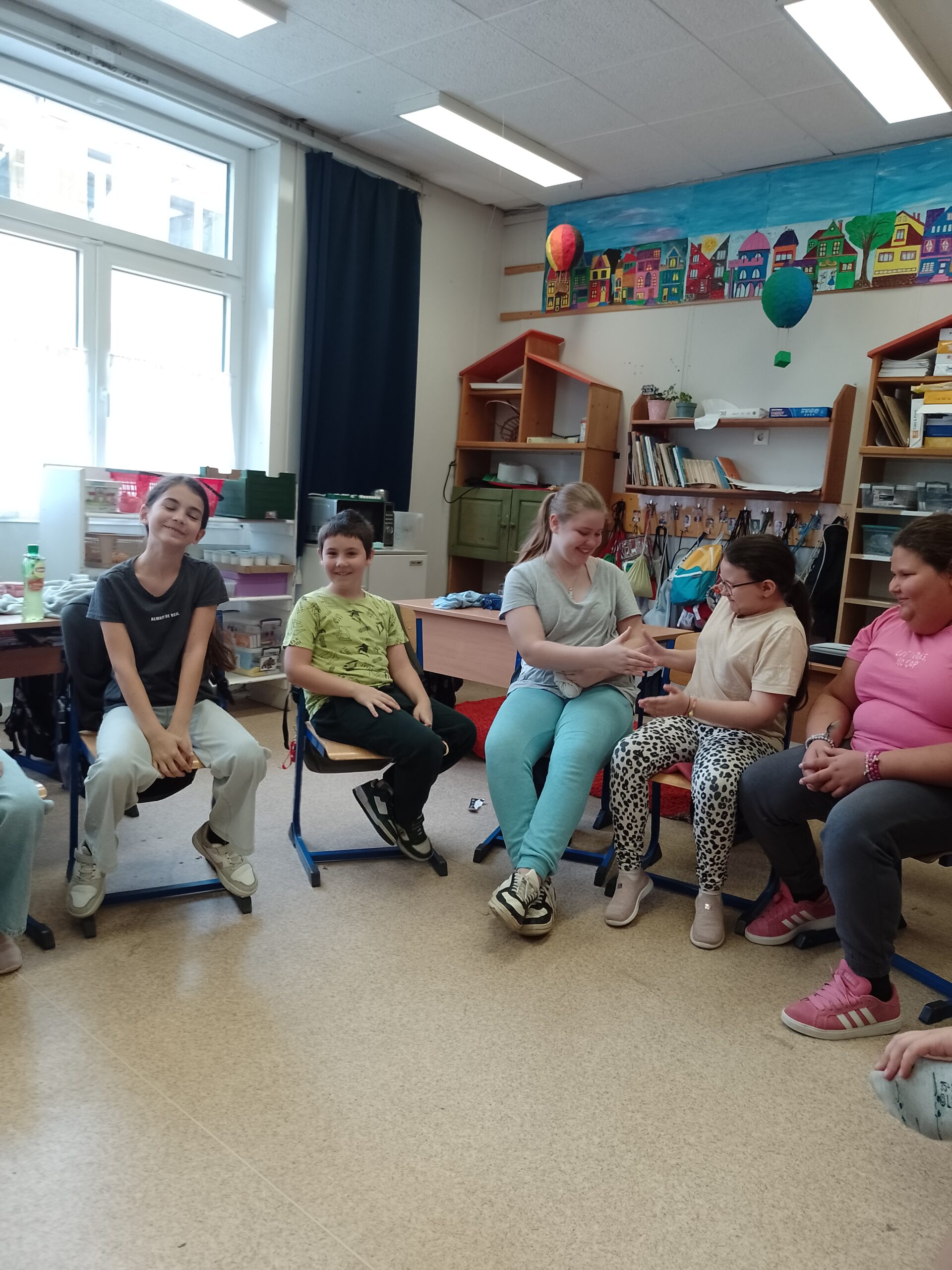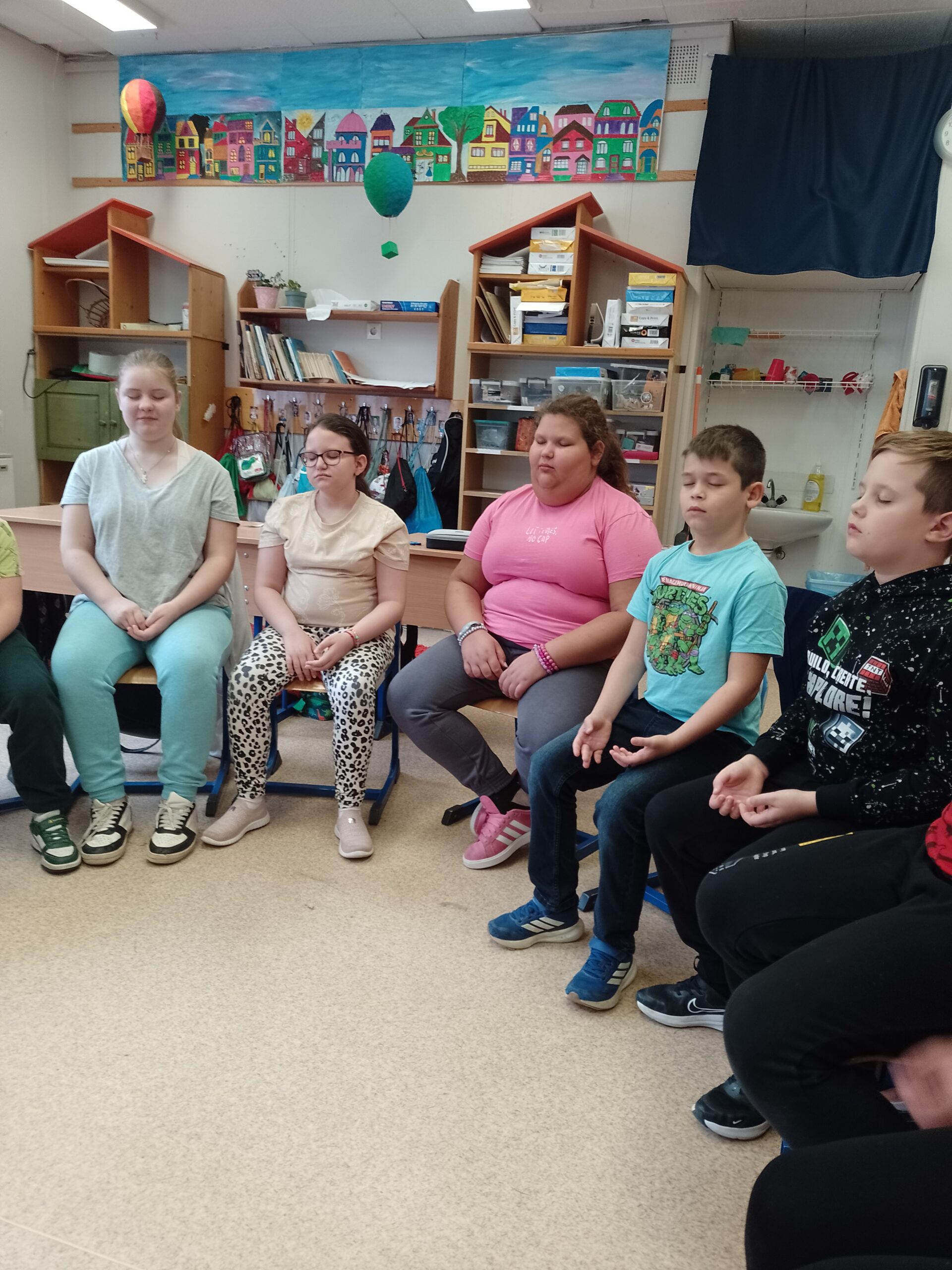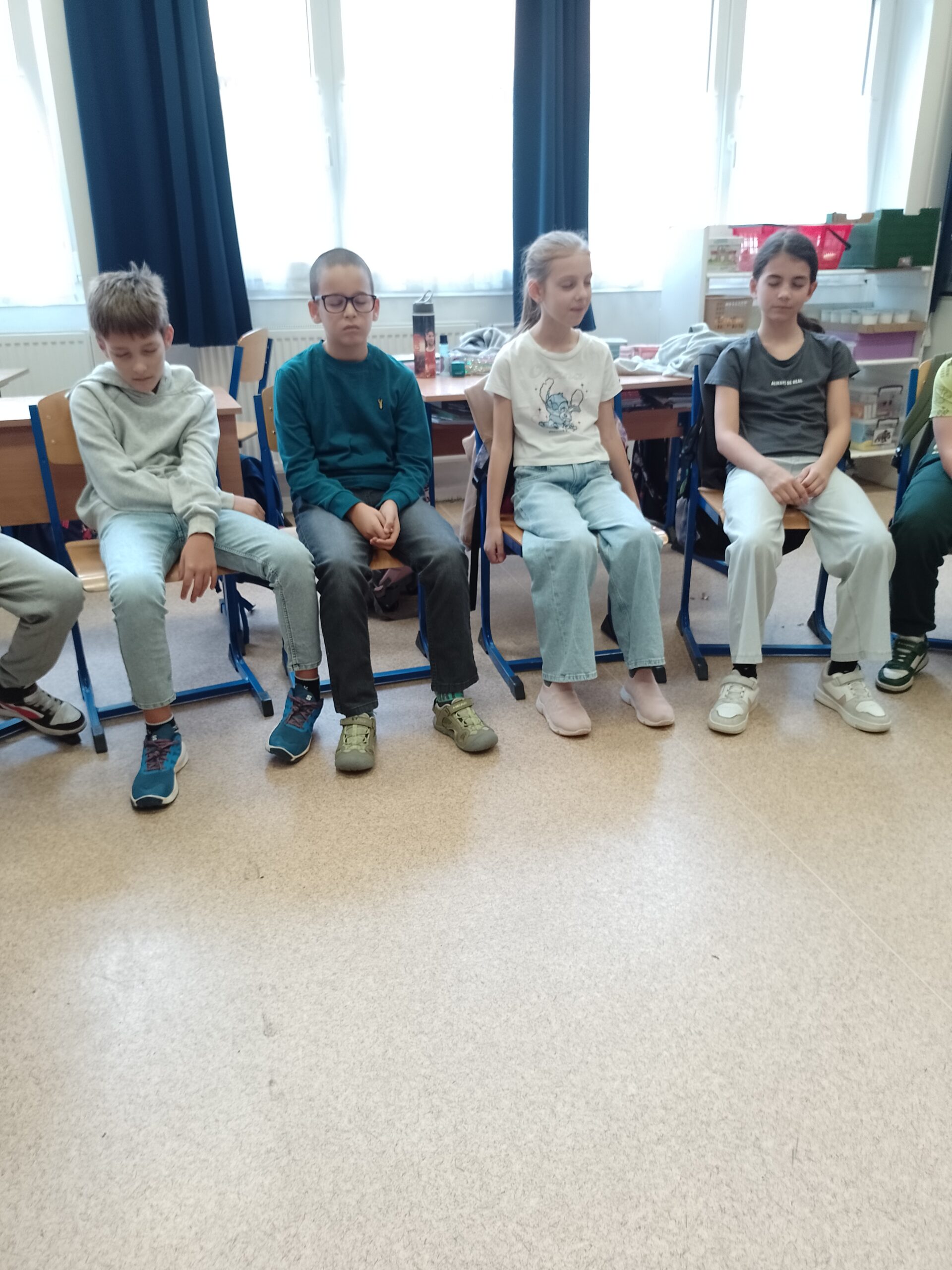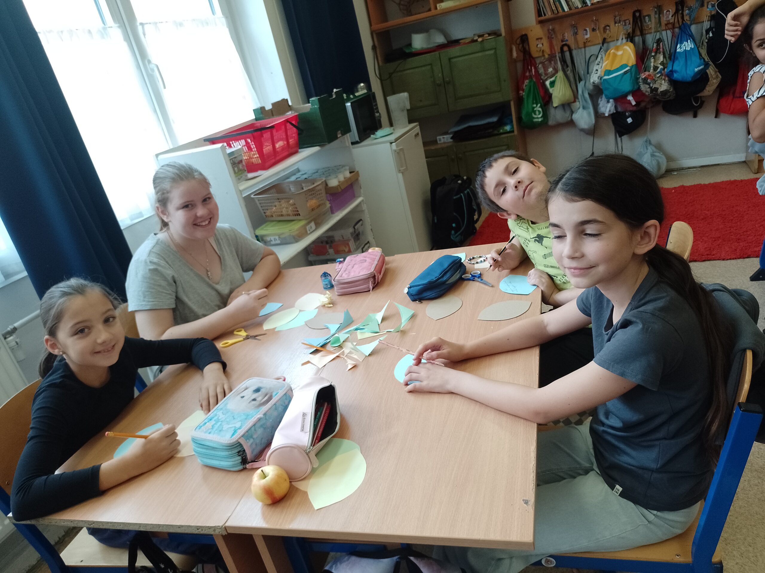 Negyedikeseim vannak. A hála gyakorlása órát tartottam. A meditációt már elsőtől kezdve próbáltuk. Külső ingerek észlelése, testérzetek és légzésfigyelés. Most egy tibeti hangtál hangjára kellett lezárni a meditációt. Szívesen beszéltek a háláról. Az órát Holle anyó meséjével kezdtük, és megfigyeltük, ki érzett hálát a történetben, miért és mivel viszonozta. Majd áttértünk a saját hétköznapjainkra, és ott vizsgáltuk meg ezt a kérdést. Külön öröm volt, hogy egymást is megemlítették, és meg is indokolták konkrétan, hogy mit köszönhetnek osztálytársaiknak. Jó érzés volt az is, hogy szinte mindenki megemlítette a háziállatát is a családján kívül, sőt többen Istennek is hálásak voltak. Majd kivágtuk színes papírból a leveleket és mindenki ráírta egy-egy levélre, hogy kinek miért hálás. Még délután is kértek színes papírt, hogy folytathassák. A végén megbeszéltük, hogy otthon elmondják szüleiknek egy nagy és szoros öleléssel fejezik ki hálájukat.