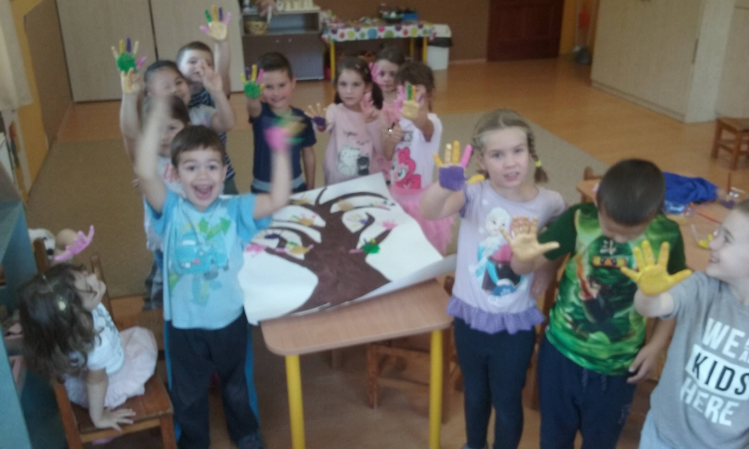 A gyerekek aktívan és boldogan vettek részt a foglalkozáson. Teljes átéléssel táncoltak, őszintén megnyílva beszéltek érzéseikről, a mese szinte elvarázsolta őket és a végén vidáman festegettük ki közösen a tenyerüket és nyomdázva díszítették ki a hálafánkat. Hálás vagyok a gyerekeimnek ezért a Boldog óráért Is.