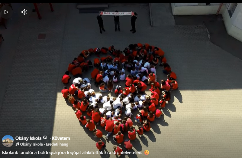 A Boldogság világnapján iskolánk tanulói drónfelvételen örökítették meg a boldogságóra logójának kialakítását.