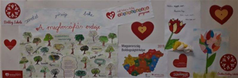 Közös alkotás a tabló az éves munkákból válogatva, mely az aulánk falát díszíti.