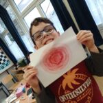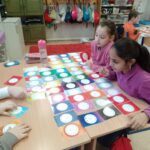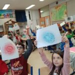 – A kapcsolatokat válogattuk, mérlegeltük és írtuk be a színes körbe, hogy ki áll közelebb és ki távolabb hozzánk. A kört nem a munkafüzetből vettem végül, hanem maguk készítették körzővel és színezték ki. Ez nehezebben ment, leginkább mindenki a közelebbi vagy a távolabbi körben volt, a középmezőnyt nem érzékelik még. A kapcsolatok ápolása, hogy nekik is tenni kell, ez a nézőpont láthatóan új volt számukra, ezt meg is fogalmazták.