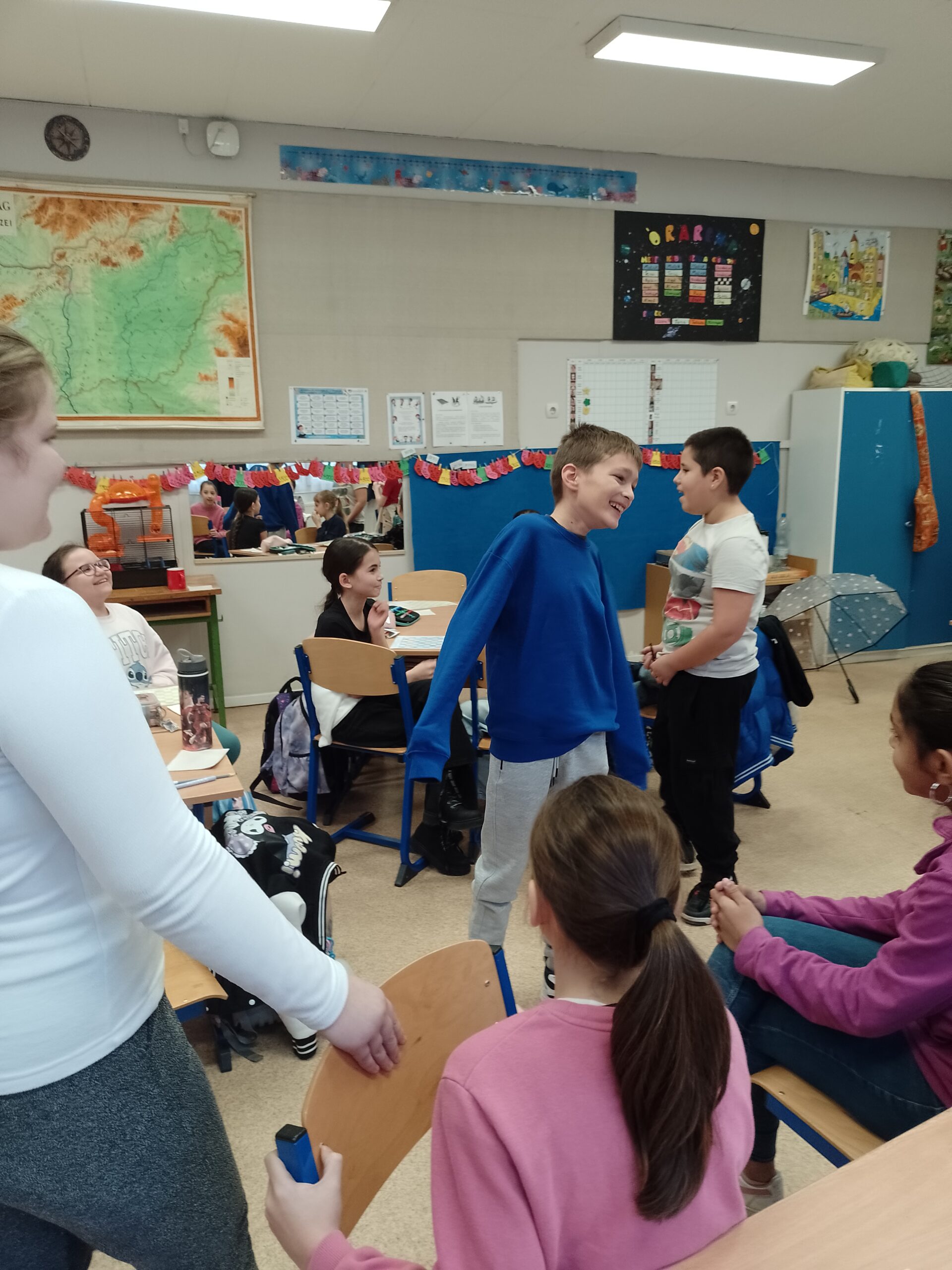 – A közösségi érzés erősítésére dobókockával választottunk gyerekeket és a kör közepén állva a többiek emlékeket idéztek fel, amiben ő szerepelt. Emlékszel, amikor… Ennek nagyon nagy sikere volt, mindenki vidám lett és jókedvű, így ezt máskor is csinálnunk kell majd.