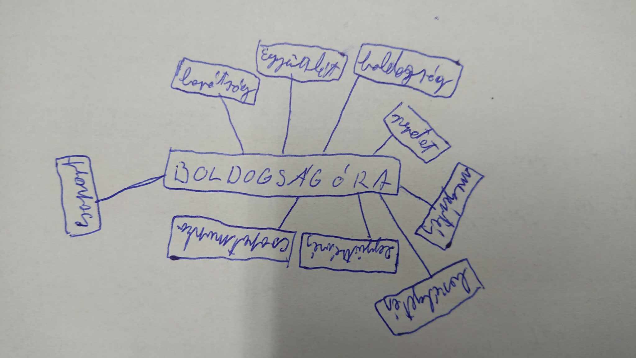 Közösen összegyűjtöttük a tanév boldogságóráinak témáit, majd gondolattérképet készítettek a boldogságórák előnyeiről.
