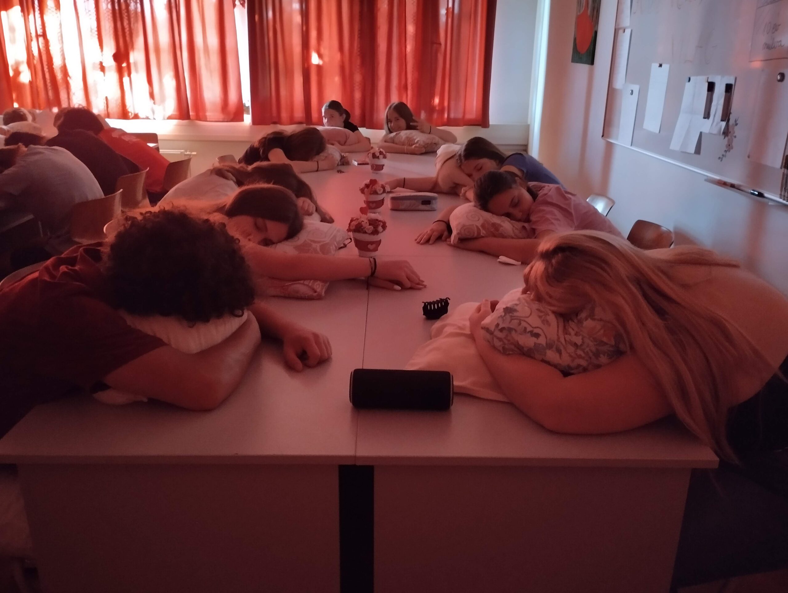 Mindenki kapott egy saját „Hála párnát”, hogy a relaxációt kényelmesen végezhessék, ha a padra lehajtják a fejüket.