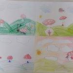 A fenntartható boldogságról az idézetek elolvasása után beszélgettünk, majd Bella dalát hallgattuk meg. A „Katica elveszett pöttyei” című mese adott szempontok szerinti feldolgozása után rajzot is készítettek. A boldogságórák zárásaként festett képet készítettek.