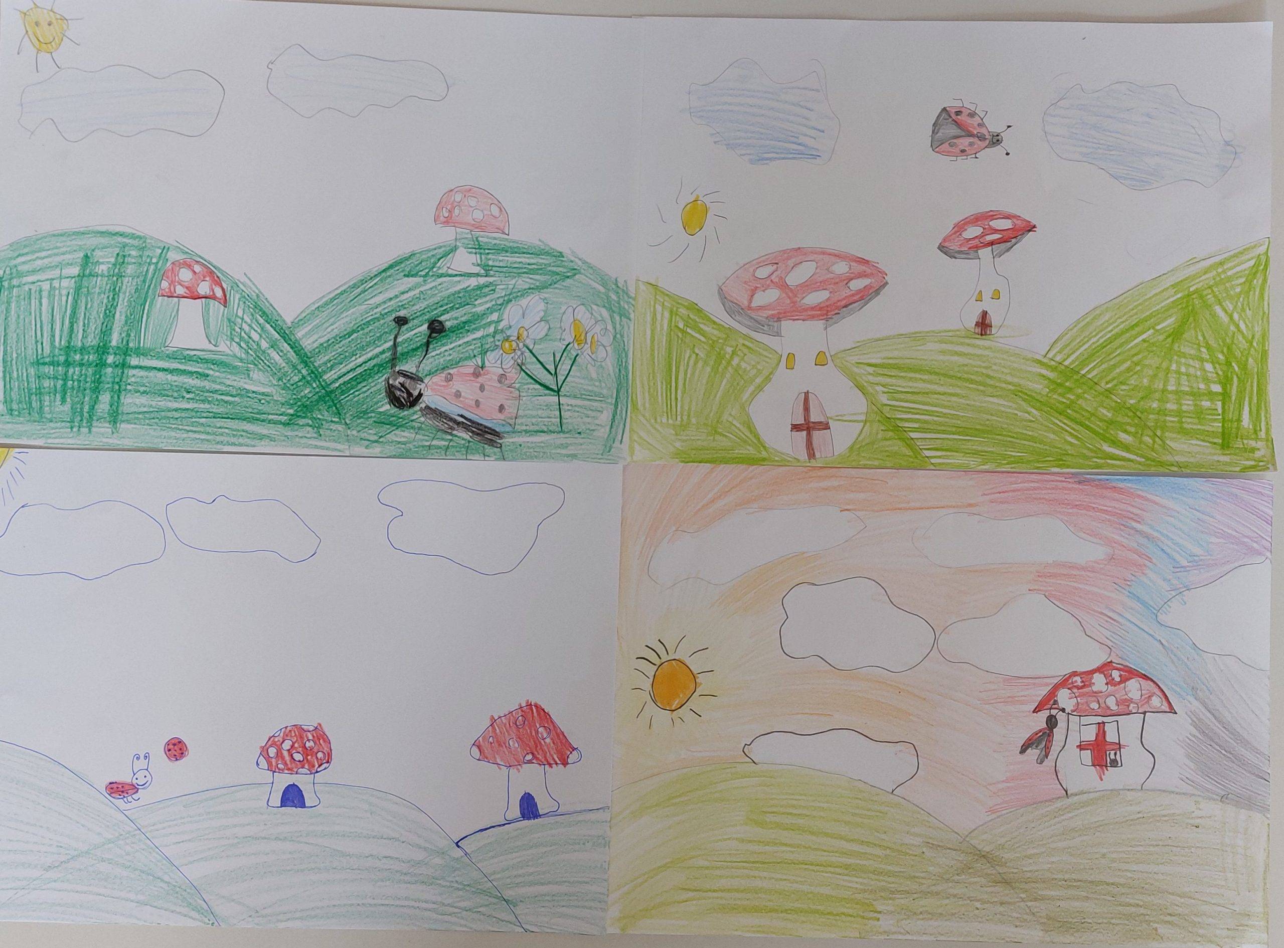 A fenntartható boldogságról az idézetek elolvasása után beszélgettünk, majd Bella dalát hallgattuk meg. A „Katica elveszett pöttyei” című mese adott szempontok szerinti feldolgozása után rajzot is készítettek. A boldogságórák zárásaként festett képet készítettek.