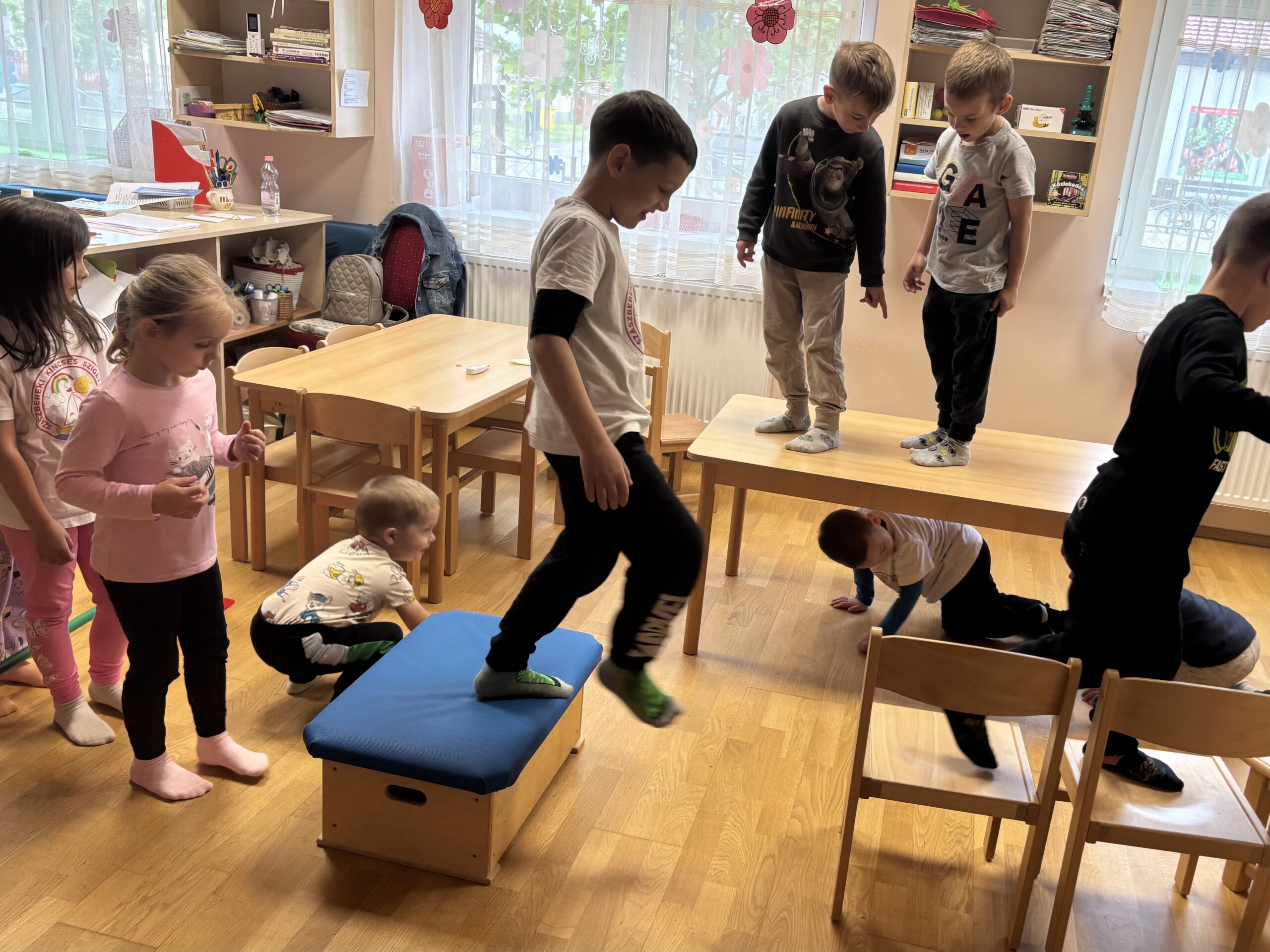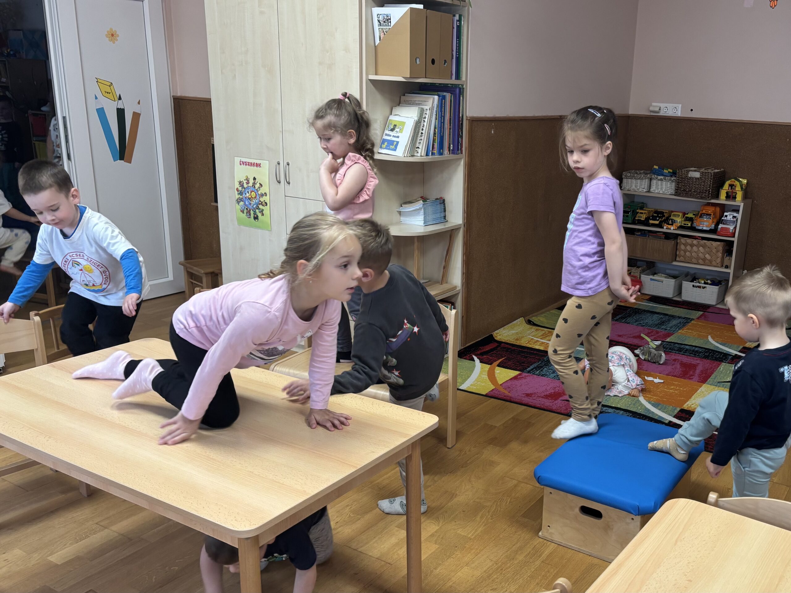 A foglalkozások tervezésénél figyelembe vettük a gyermekek életkorát és életkori sajátosságuk szerint differenciáltunk. Először Bagdi Bella Ellazulni jaj de jó.dalát hallgattuk meg ( a gyerekek kérésére többször is). Az Aranykulcs mese meghallgatása után mi is próbára tehettük bátorságunkat. Az akadályokat mindenki siketesen teljesítette.