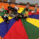 Ebben a hónapban a jó cselekedetek fontosságát ismertük meg. Külön kis alkalmunkat a szokásos relaxációs blokkunkkal kezdtük, melyhez nyugtató zenét alkalmazunk. A Már várt napimádás után ölelő játékkal folytattuk. Persze Dóra is velem jött, és a bevezetés után el is beszélgettünk róla, hogy mi az a jó? Mi a jó cselekedet és hogy, hogyan tehetünk egymással jót. Igyekeztem minél több példával közelebb hozni a témát és Dóra is sokat segített ebben. A még jobb megértés érdekében Dórával szituációs játékot játszottunk. A vége felé már egészen ügyesen improvizáltak a gyerekek.