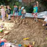 Nyári életünket június eleji évzárónk után csaknem teljes létszámmal indítottuk. A jó időt kihasználva teraszunkon gyülekeztünk, reggeliztünk, majd udvari játékokkal játszottunk. Kedvenc időtöltésünk volt a homokozóban építés, formázás, kincskeresés valamint a hintázás, csúszdázás, kerékpározás, vizes ügyességi játékok.