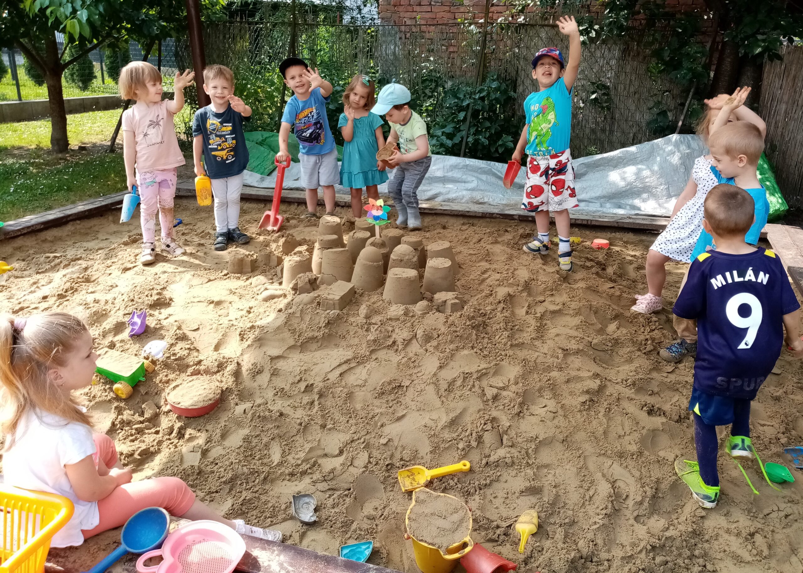Nyári életünket június eleji évzárónk után csaknem teljes létszámmal indítottuk. A jó időt kihasználva teraszunkon gyülekeztünk, reggeliztünk, majd udvari játékokkal játszottunk. Kedvenc időtöltésünk volt a homokozóban építés, formázás, kincskeresés valamint a hintázás, csúszdázás, kerékpározás, vizes ügyességi játékok.