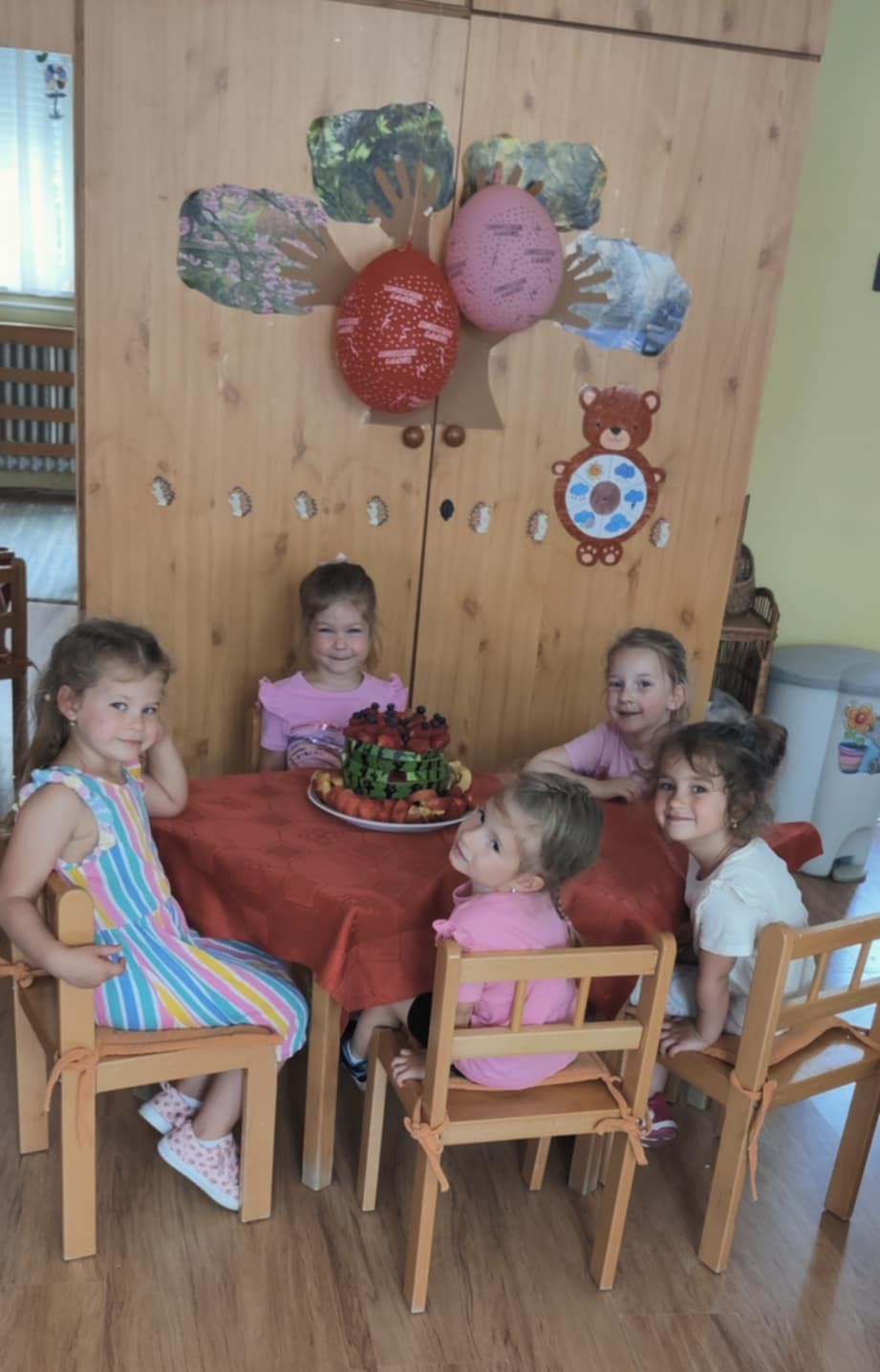 Képességeinkhez mérten örömmel készítettük a Boldogságvárunkat, majd aszfaltkrétákkal udvari járdánkon kontúrrajzos gyermekformákat színeztünk. Nem feledkeztünk meg a nyáron született gyermekeink felköszöntéséről sem, így mindenki részese volt a szeretetfolyosón áthaladva pozitív tulajdonságainak megerősítésében, ölelésláncban.