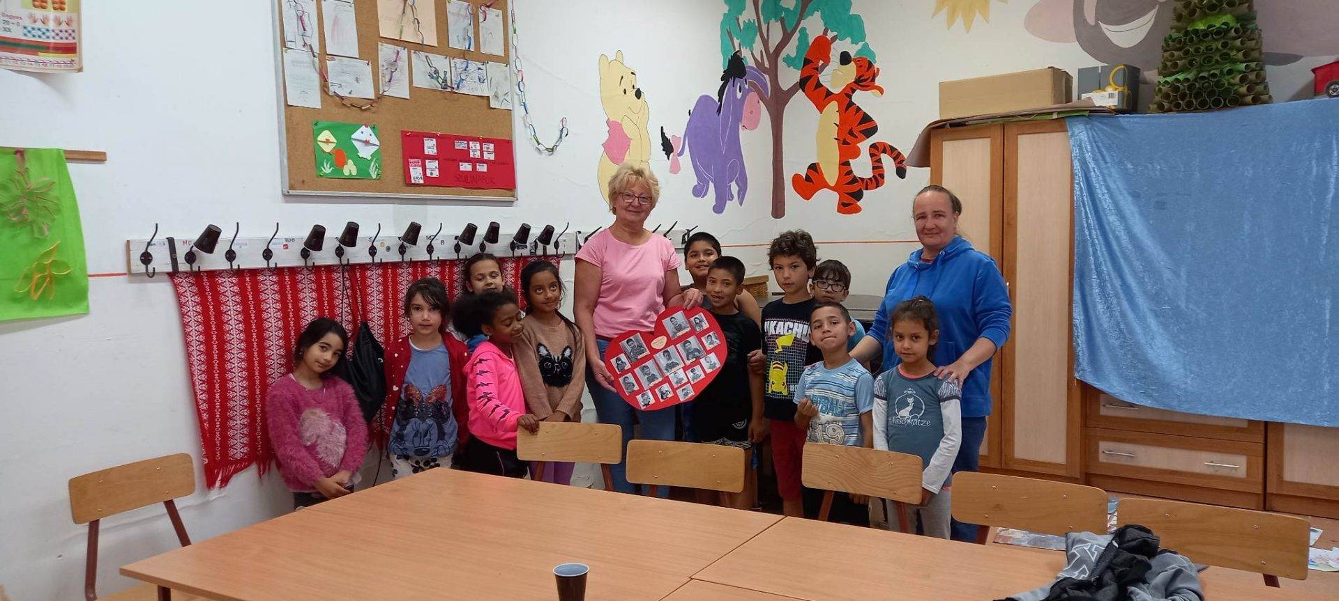 Egy kedves tanár néninket búcsúztatta el az osztály. Apró műsorral készültek külön, vagy párban. Tablót készítettünk, melyen a közös élményeket elevenítettük fel.