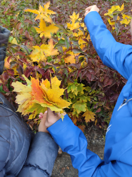 November elején még kicsit az ősz fogadott bennünket. Az őszi szünet után örültünk egymásnak. Társas kapcsolataink szabadban, kötetlenül töltött idejében búcsúztunk az őszi természet szépségétől. Mielőtt bekuckóztunk, egymásnak örültünk a szabadban. Emlékeket kerestünk, bújócskáztunk, feltöltődtünk, az őszi napsütésben. Barátom vagy, ha velem tartasz-játékot játszottunk, amikor kisebb csapatok az egyikőjük által felkínált tevékenységet választva külön utakon jártak a parkban. Voltak akik a legszebb leveleket gyűjtötték, mások titkokról beszélgettek, elbújva suttogtak és jókat nevettek.
