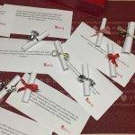 Ballagóink számára sok-sok szeretettel, boldogsággal kapcsolatos idézetet nyomtattunk ki. Ezeket feltekertük, díszes szalaggal átkötöttük, majd egy szép dobozba tettük. A ballagás után végzős diákjaink valamennyien húztak egyet a sok közül. Így mindenkihez pont az az üzenet került, ami ott és akkor neki szólt. Örültek a kedves ajándéknak, mosolyt csalt az arcukra.