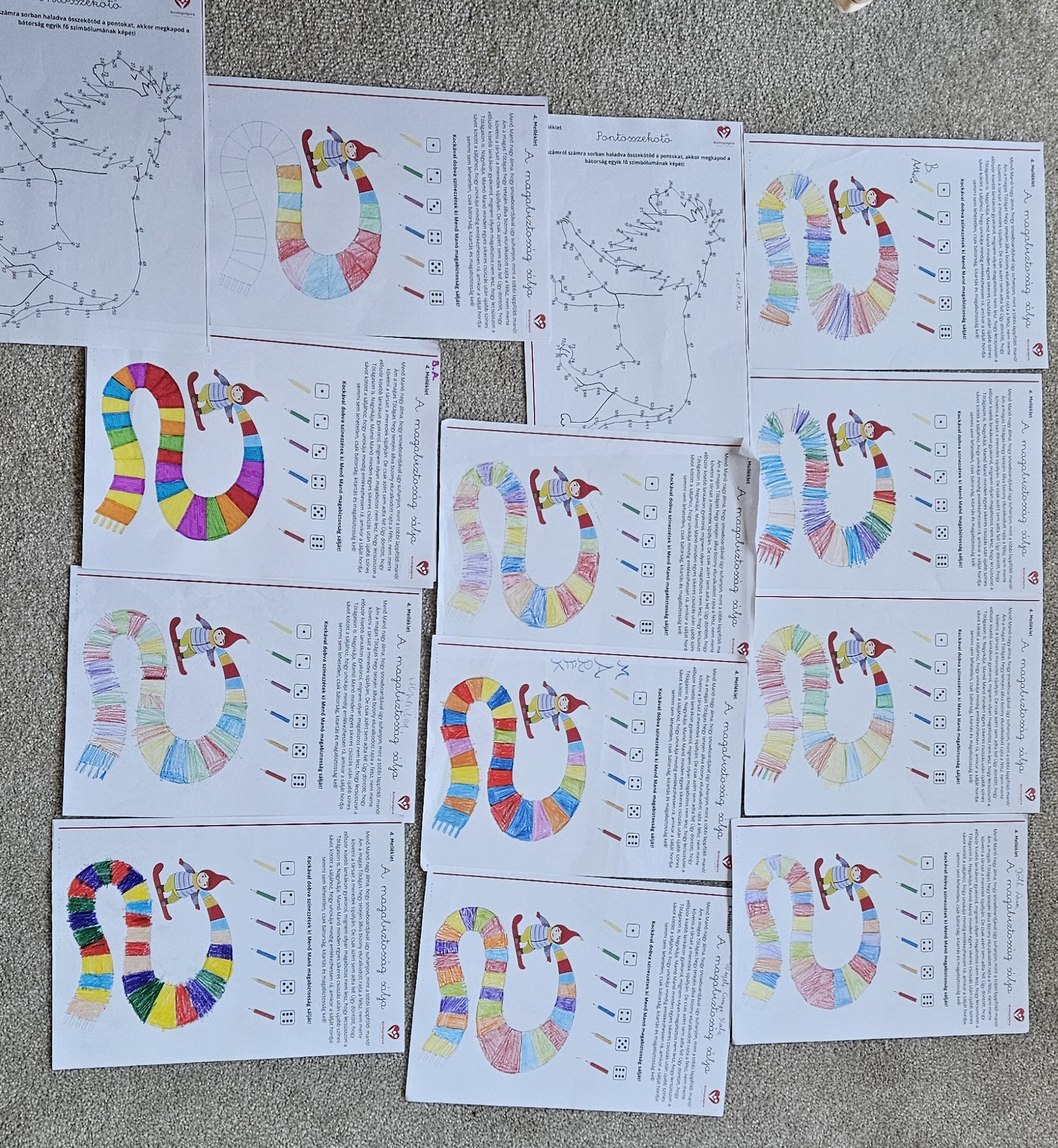 Rajzban is megjelenítettük, hogyan küzdünk meg a problémáinkkal. Kiszínezték a magabiztosság sálát és a bátorság szimbólumát,az oroszlánt is megoldották pontösszekötő formájában.
