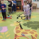 Két csapatot alkottunk,közösen kijelöltünk egy könnyen elérhető célt(karika),babzsákokkal célba dobtak.Átélhették mikor sikerül eltalálni a célt,és megtapasztalták hogy nem mindig sikerül elsőre.