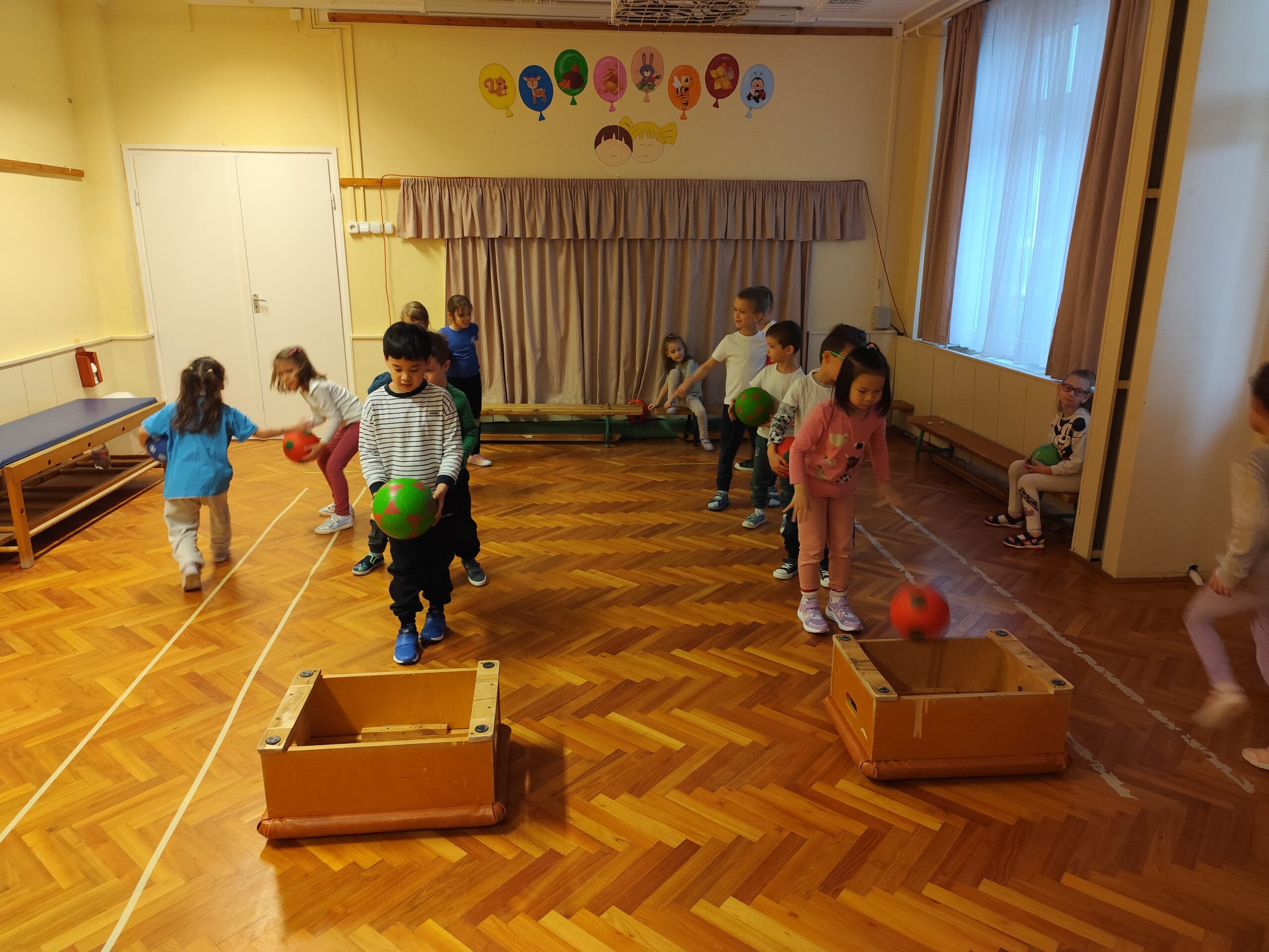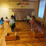 A havi témák közül a célbadobás érintett meg leginkább. A mindennapos mozgás során gyakoroltuk a célbadobást a gyerekekkel, két csapatot alkottunk, mindenki dobott egyszer, kipróbálta milyen érzés ha a labdája célba ér. Aztán megbeszéltük, hogy mindenki találjon ki egy célt. Újra célba dobtak, és megbeszéltük miközben dobnak ki kell mondaniuk a célt, amit megfogalmaztak. Több gyerk is nagyon találó célt tudott megfogalmazni: pl: szeretné a labda pattogtatást megtanulni, legyen egy kutyája, szeretne megtanulni fuvolázni, gitározni. Azt is megbeszéltük, hogy kitartónak kell lenni, ha elsőre nem sikerül, újra kell próbálkozni, nem szabad feladni.