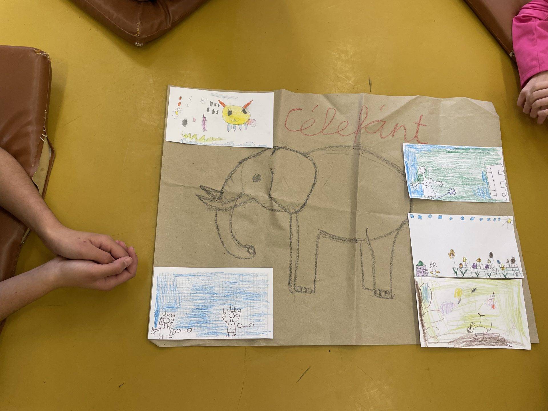 A rajzokon a Célefánt mellett a gyerekek a saját céljaikat fogalmazták meg.
