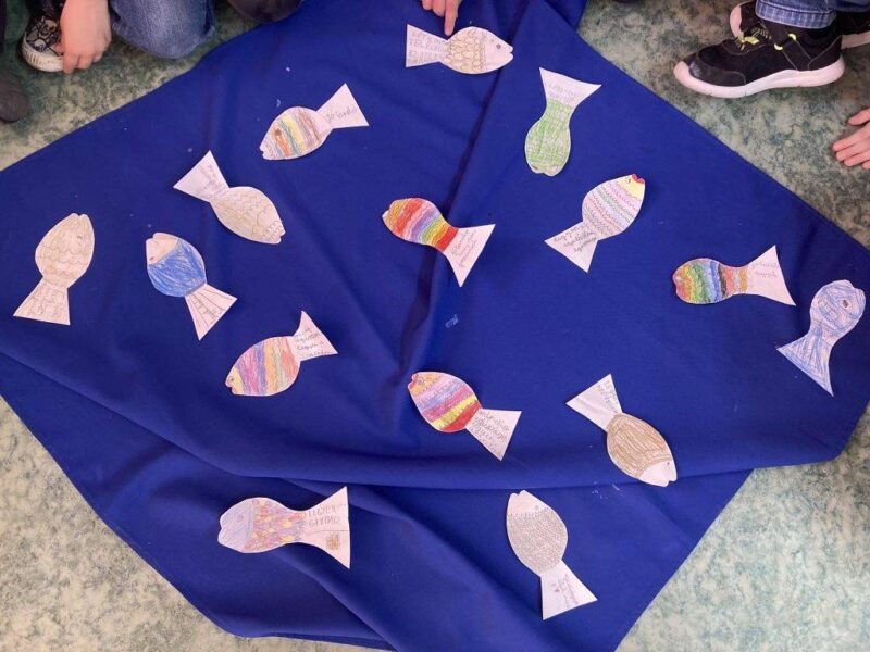 A második osztályban a mesék birodalma témakörnél tanultuk : Az öreg halász és a nagyravágyó felesége c. mesét. Ehhez kapcsoltuk a hónap témáját. Ki milyen célt halászna ki szívesen az új esztendőben?