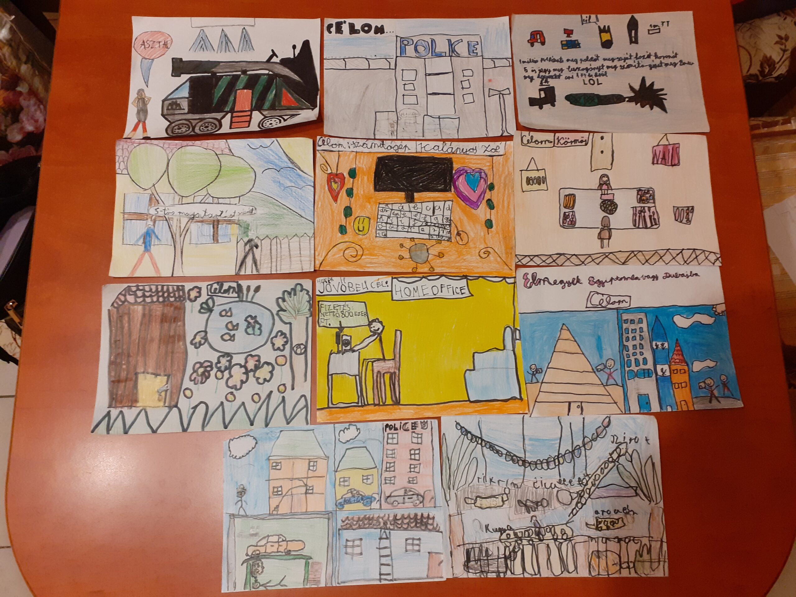 A ‘Ha nagy leszek’ játékhoz kapcsolódóan csodaszép képeket készítettek a gyerkőcök, mely feladat során megbeszéltük, hogy ki, mi szeretne lenni majd felnőtt korában. Arról is szót ejtettünk, hogy hogyan lehet elérni a kitűzött céljukat.