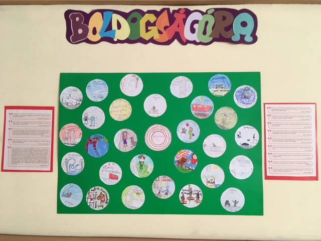 A Boldogságóra januári témája a célok kitűzése és elérése. A tartós boldogság elérésének egyik legfontosabb stratégiája egy értelmes életcél kitűzése és elérése. Az Árpád vezér Általános iskola 3.c osztályosai képekben rajzolták le közeli és távoli céljaikat. Íme néhány ezek közül: barátnőmhöz jobban közeledni, lazább akarok lenni, év végén kitűnő szeretnék lenni, állatorvos, ornitológus, lovas, dobos, autóversenyző, állatgondozó-, szeretnék lenni. A tudományos kutatások szerint a lelki jóllét szempontjából talán fontosabb, hogy törekedjünk egy cél felé, hogy részt vegyünk egy értékes és kihívásokat magában rejtő tevékenységben, mint hogy el is érjük a célunkat, mert a cél eléréséhez vezető út az ismeretlen, mely küzdelemre sarkall, a cél már ennek egyenes következménye.