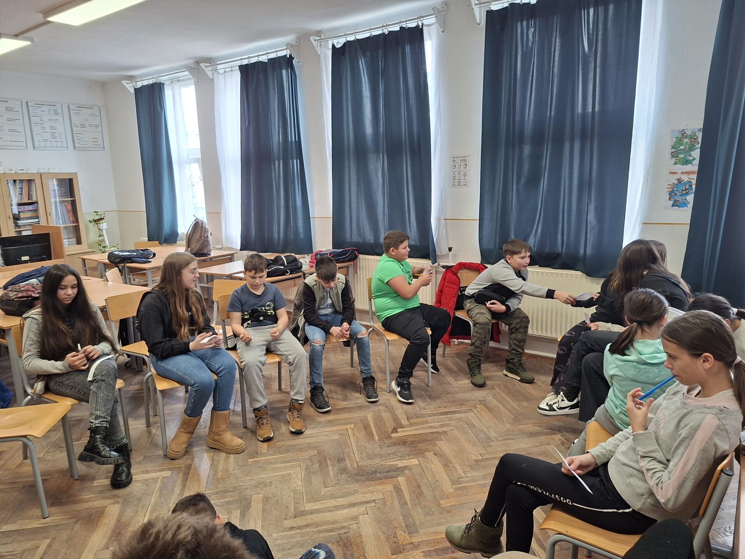 Az óra végén közösségi beszélgetés zajlott arról, hogyan tudják egymást támogatni a következő félévben. A tanulók aktívan, őszintén vettek részt a feladatokban, az óra pozitív, bátorító légkörben zárult.