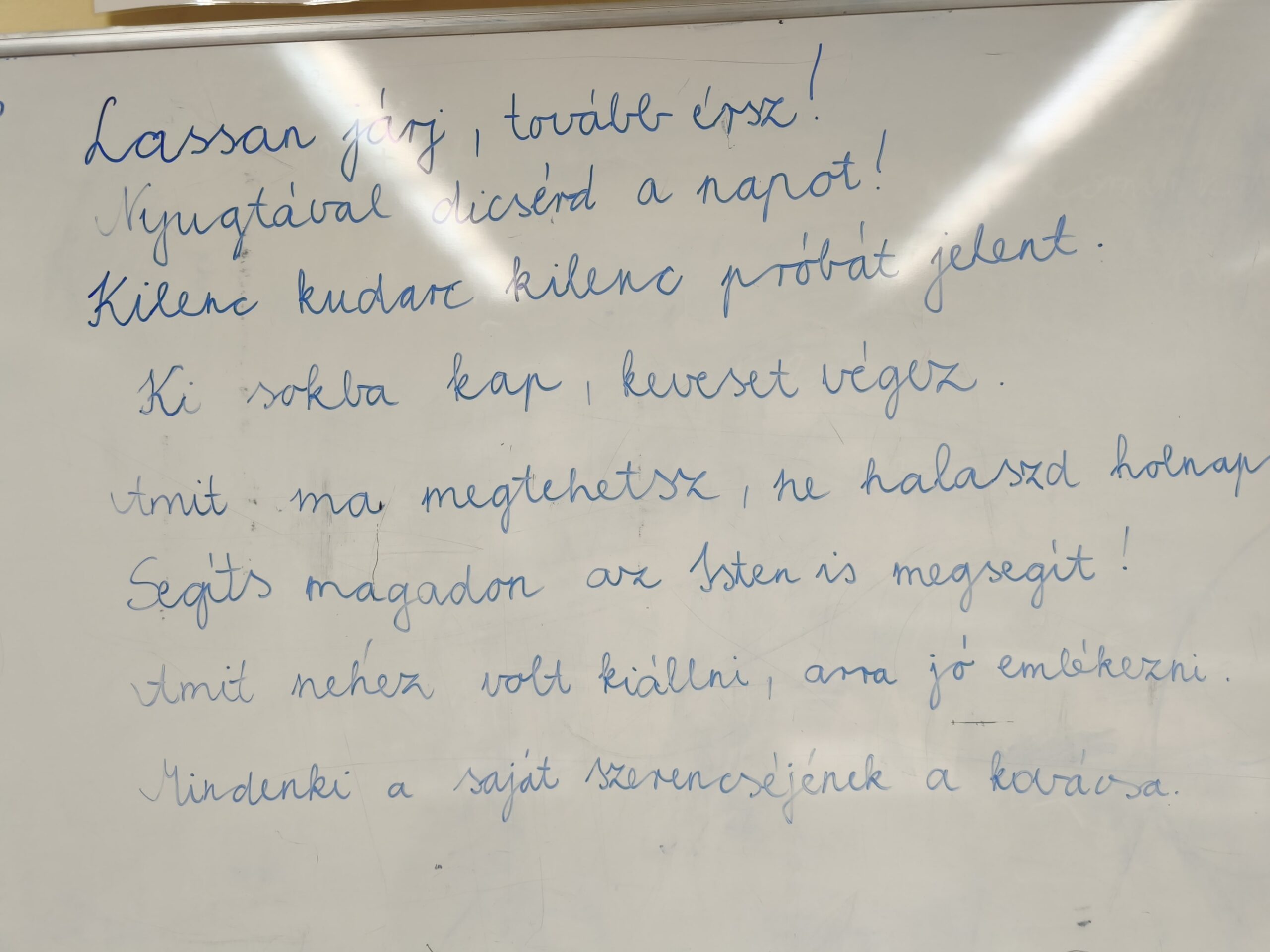 Boldogságórán a célkitűzés fontosságáról beszélgettünk. E téma kapcsán közmondásokat és szólásokat értelmeztünk. Ezután időgépbe szálltunk, mellyel elrepültünk a jövőbe. Az ott látott vízió lerajzolása után, elmondhatták mit szeretnének eléri, mit rajzoltak le. Végül meghallgattuk a hónap dalát is.