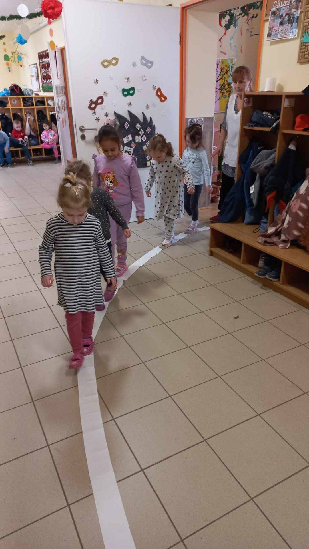 A januári téma jelölése remekül igazodott a maci hetünk anyagához, ahol a mackót keresték a gyerekek kijelölt utakon, majd az időjárást figyelve igyekeztek segíteni a macinak. Itt a megfogalmazott célunk, feladatunk a hagyományok ápolása, a szavak jelentésének feldolgozása, az ok-okozatok felismerése volt. Lelkesen kutatták a gyerekek, a medve barlangját, majd ismert dalokkal, mondókákkal ébresztették a „szunyókáló”mackókat!