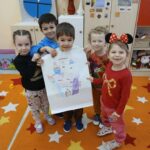 A következő hónapnak is fontos témája a célok kitűzése és elérése. A gyerekeknek elmeséltem a Boldogságvárral kapcsolatos mesét. Megbeszéltük, hogy a gyereknek a mesében mi volt a célja, mit szeretett volna elérni. Kipróbáltuk azt a játékot, hogy kosárba egy labdát dob bele minden gyermek. Megkérdeztem tőlük, hogy kinek mi a célja a labdával és sok gyermek azt válaszolta, hogy bele dobja a labdát a kosárba. Aki szerette volna kirakni a Boldogság vár puzzlet, azok a gyermekek közösen kirakták a kirakót. A többi gyermek közösen építhetett egy Boldogság várat építőkockából vagy legóból. Néhányan pedig ki szinezhették a munkafüzetben található „mik a céljaim” feladatot. Sok gyermeknek már teljesült a célja, de voltak olyan gyermekek, akiknek még vannak céljai. Végül lerajzoltam a gyermekeknek a Boldogság várat, melyet közösen szép színesre kiszineztek és kitettük a termünkbe a várat, amit nap mint nap csodálhatnak.