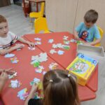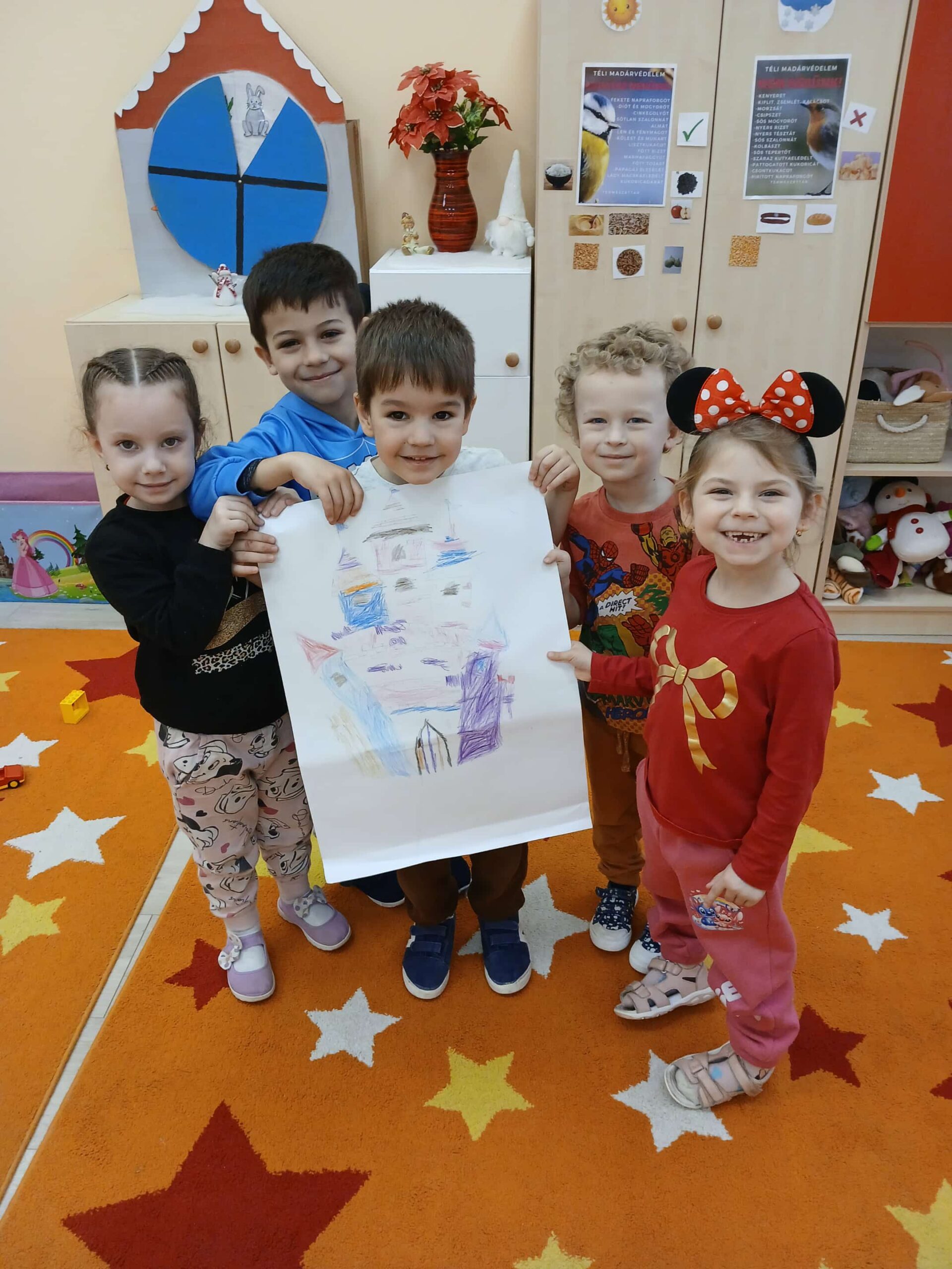 A következő hónapnak is fontos témája a célok kitűzése és elérése. A gyerekeknek elmeséltem a Boldogságvárral kapcsolatos mesét. Megbeszéltük, hogy a gyereknek a mesében mi volt a célja, mit szeretett volna elérni. Kipróbáltuk azt a játékot, hogy kosárba egy labdát dob bele minden gyermek. Megkérdeztem tőlük, hogy kinek mi a célja a labdával és sok gyermek azt válaszolta, hogy bele dobja a labdát a kosárba. Aki szerette volna kirakni a Boldogság vár puzzlet, azok a gyermekek közösen kirakták a kirakót. A többi gyermek közösen építhetett egy Boldogság várat építőkockából vagy legóból. Néhányan pedig ki szinezhették a munkafüzetben található „mik a céljaim” feladatot. Sok gyermeknek már teljesült a célja, de voltak olyan gyermekek, akiknek még vannak céljai. Végül lerajzoltam a gyermekeknek a Boldogság várat, melyet közösen szép színesre kiszineztek és kitettük a termünkbe a várat, amit nap mint nap csodálhatnak.