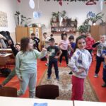 A könyvből megismert légyzőgyakorlatokból rendszeresen válogatok, amit beépítek a nap folyamán, amikor épp szükségét érzem. Csoportom nagy kedvence lett a számolós- mozgásos gyakorlat. A mellékelt fotókon : a három- nyújtózkodni vágyom, és a négy-szuperhős légy mozdulatai láthatóak.