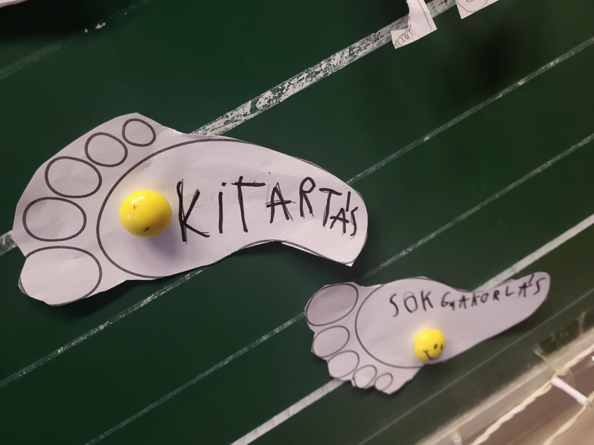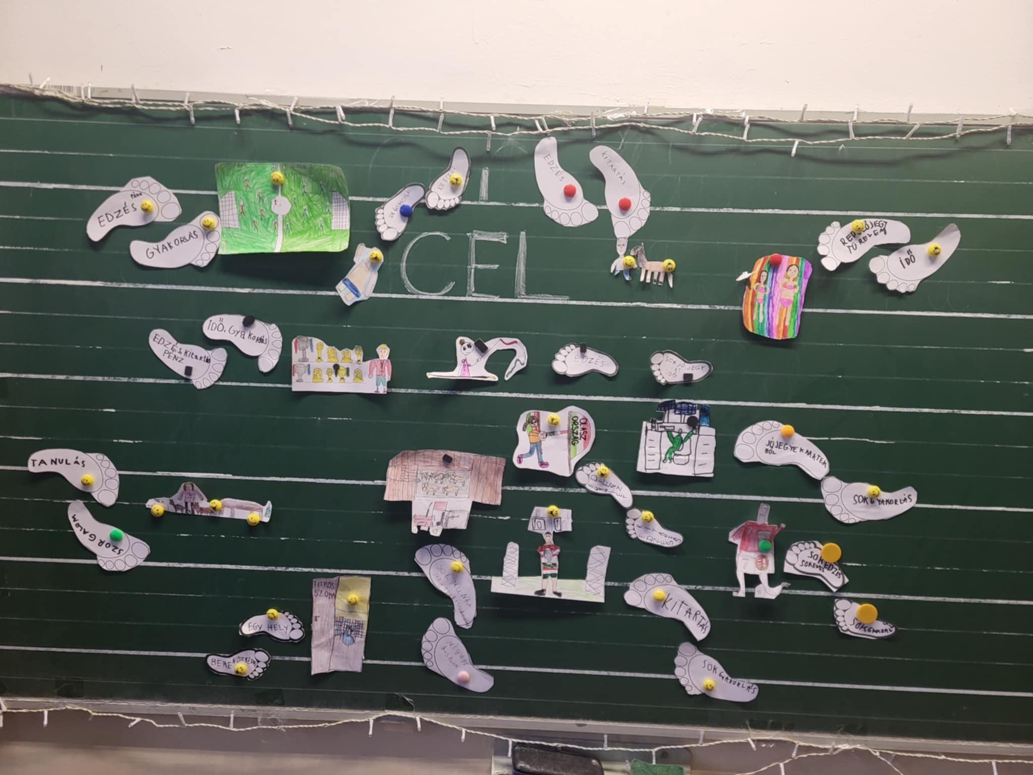 A foglalkozás végére a gyerekek megértették, hogy a célok eléréséhez apró lépésekre, türelemre és hitre van szükség. A lábnyomok azt jelképezték, hogy minden kis lépés közelebb visz bennünket álmaink megvalósításához, és hogy a boldogság útja tudatos erőfeszítéssel járható végig.
