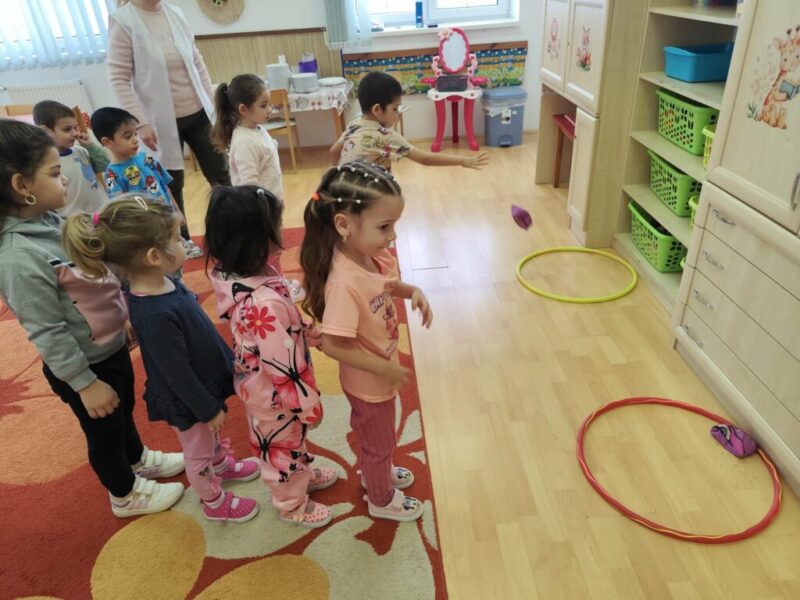 A téma bevezetése érdekében két csoportot alkottunk.Kijelöltük a célt,ahová babzsákkal kellett célba dobni.