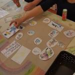 Bagdi Bella: “Van nekem egy álmom …” kezdetű dalt hallgattuk meg a gyerekekkel. Ezt követően a “Küldöm a levelem a barátomnak” játékkal folytattuk, ahol körben ülve, kézszorítással adtuk továbba képzeletbeli levelet. Megnyugtató volt számomra, hogy egyetlen gyermek sem maradt ki a játékból. Olyan kisgyermek is volt, akit többen is választottak. Elfogadó, egymással toleráns viselkedés jellemző a mindennapokban is a csoportra. De ezzel a játékkal újra megerősítették számomra, hogy igazi, erős baráti kapcsolatokkal rendelkező csoporttal dolgozom együtt. A “Boldogság meséje” című mese meghallgatása után közösen értelmeztük a hallottakat. Megbeszéltük, hogy a csoportnak milyen közös céljai vannak a jövőben. Kértem, hogy rajzolják le, illetve színezzék ki a munkafüzetből fénymásolt ábrákat. Ezekből készítettünk egy “Közös céljaink” című plakátot, amit megmutattunk a szülőknek is.