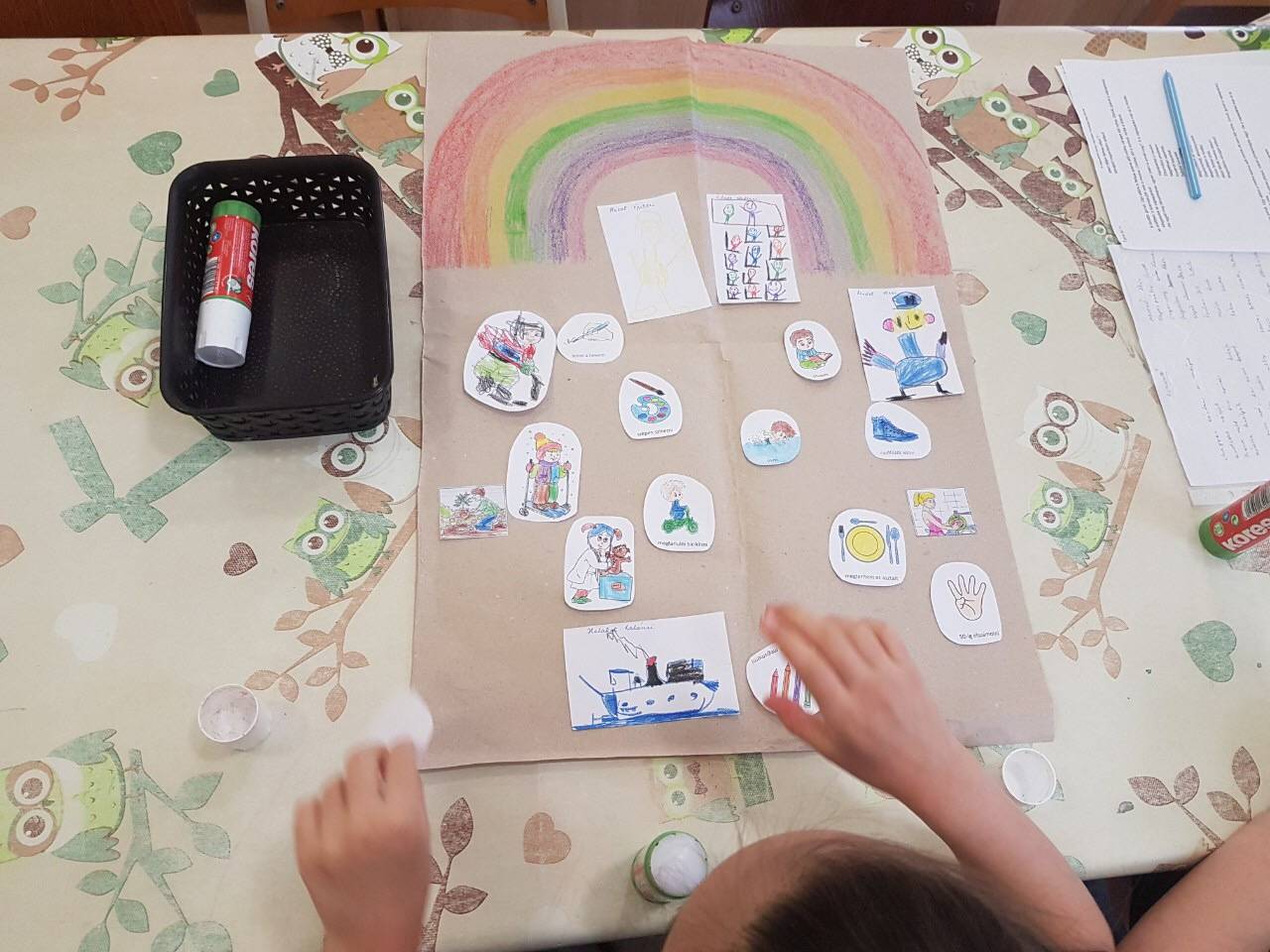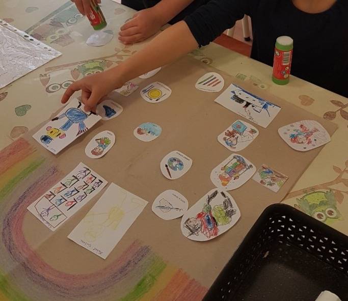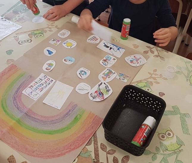 Bagdi Bella: “Van nekem egy álmom …” kezdetű dalt hallgattuk meg a gyerekekkel. Ezt követően a “Küldöm a levelem a barátomnak” játékkal folytattuk, ahol körben ülve, kézszorítással adtuk továbba képzeletbeli levelet. Megnyugtató volt számomra, hogy egyetlen gyermek sem maradt ki a játékból. Olyan kisgyermek is volt, akit többen is választottak. Elfogadó, egymással toleráns viselkedés jellemző a mindennapokban is a csoportra. De ezzel a játékkal újra megerősítették számomra, hogy igazi, erős baráti kapcsolatokkal rendelkező csoporttal dolgozom együtt. A “Boldogság meséje” című mese meghallgatása után közösen értelmeztük a hallottakat. Megbeszéltük, hogy a csoportnak milyen közös céljai vannak a jövőben. Kértem, hogy rajzolják le, illetve színezzék ki a munkafüzetből fénymásolt ábrákat. Ezekből készítettünk egy “Közös céljaink” című plakátot, amit megmutattunk a szülőknek is.