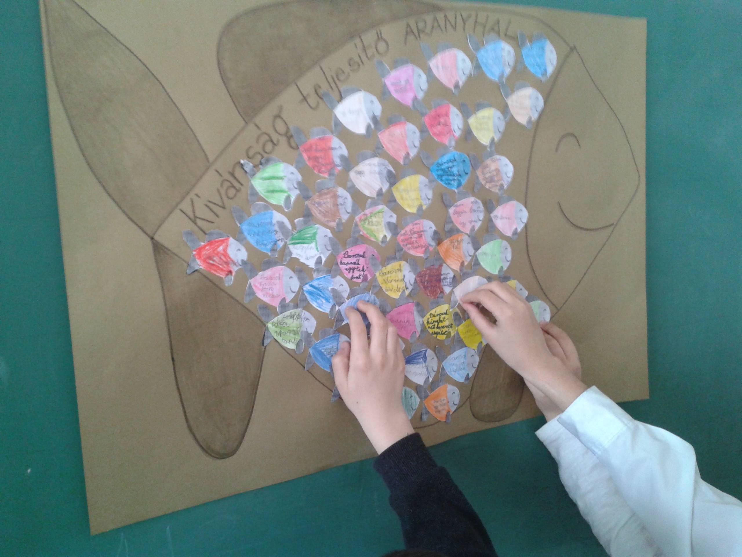 Ez a témakör nagyon tetszett a gyerekeknek.Sikerült egyéni és közös célokat is megfogalmaznunk.Nagyon sok kívánság közül válogattak a gyerekek és örömmel fogalmazták meg a kívánságteljesítő aranyhalnak ezeket.Megbeszéltük,hogy a célok eléréséig sikerek vagy kudarcok során jutunk el,de a kudarcok csak erősítenek bennünket és nem kell elcsüggedni.