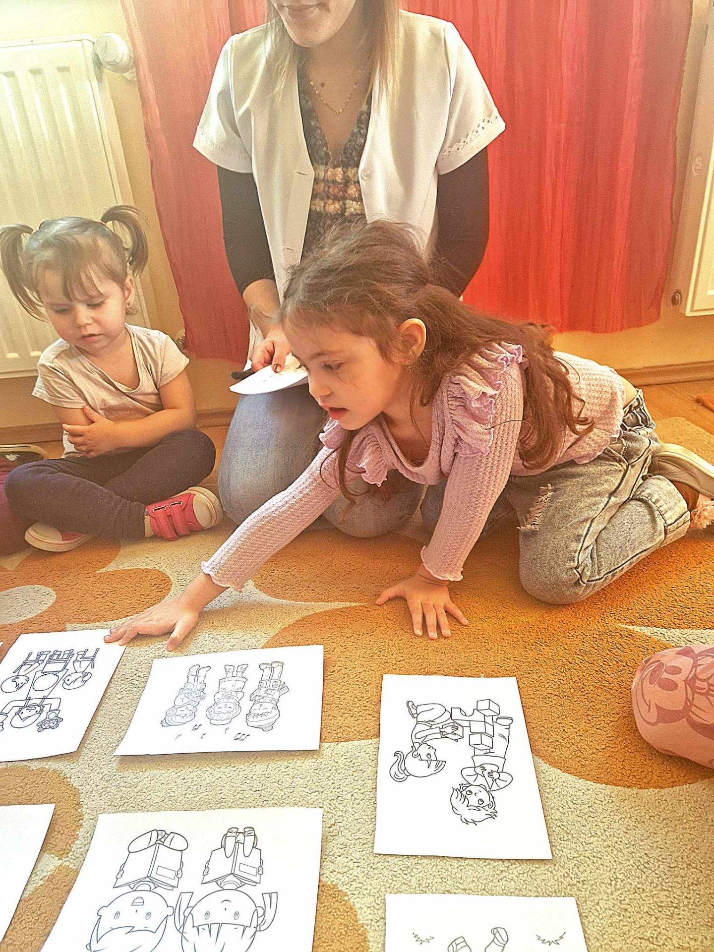 – Majd domborítottuk a hátunkat és összehúzódtunk. Domborítok mint a cica, házba bújok mint a csiga mondóka ismételgetésére.