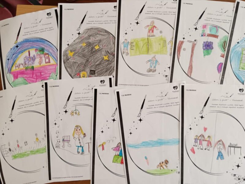 Céljaink kitűzésével foglalkoztunk az év első hónapjában. Elsőseim a koruknak megfelelően fogalmazták meg a közelebbi és távolabbi céljaikat. Elolvastuk a Varázsecset c. mesét, majd egy kicsit mi is játszottunk az osztály varázsecsetével. Ezt követően mindenki megrajzolta a maga célját, majd pedig be is mutatta azt az osztálytársainak. Nagyon érdeklődően, támogatóan álltak egymás munkájához.