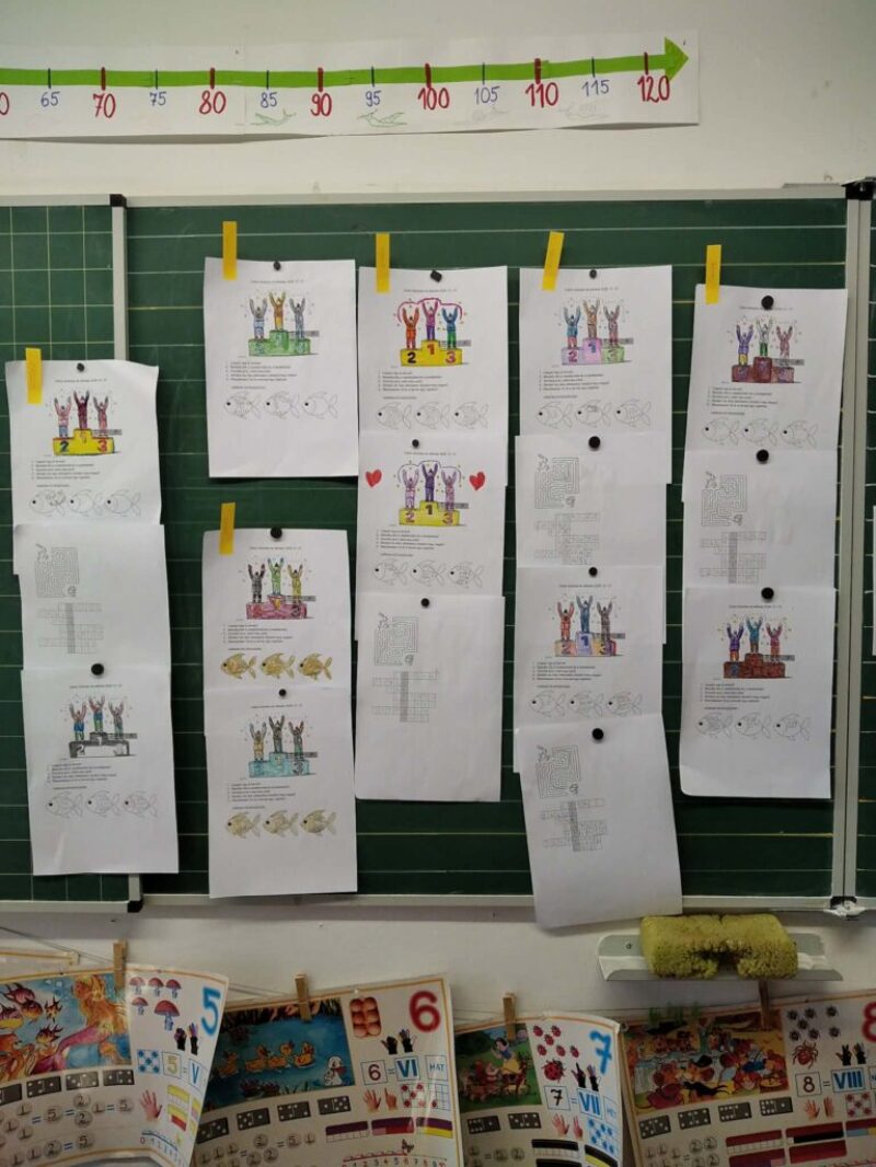 Az órát mozgásos meditációval kezdtük (Égig érő fa vagyok…). Míg a dobogós színezőt színezték a gyerekek, beszélgettünk a kitűzött célokról, mit kell megtegyünk annak érdekében, hogy el is érhessük azokat. Ezután a hónap dalát, a Van nekem egy álmom című dalt meghallgattuk. Közben mindenki kigondolt 3, elérhető kívánságot, amit a saját kis feladatlapján lévő aranyhalakba beírt. Egy útkereső segítségével a nyuszit is elvezettük a céljához. A keresztrejtvényből megtudtuk, hogy SIKERÜLT. Az óra legizgibb része ezután következett, célunkhoz eljuttató mesebeli jármű tervezése csoportban.