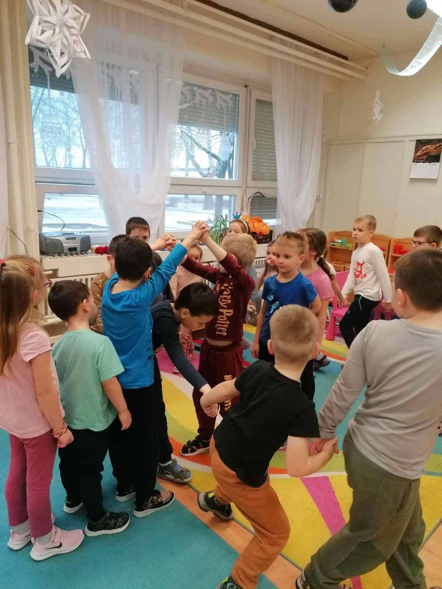 Majd 3 játékot hoztam nekik, hogy a Boldogságórán is megtapasztalhassák az egyéni és a közös célok elérését. A „Van nekem egy álmom…” című dal közben körformában elhelyezkedve egy léggömböt kellett a gyermekeknek a levegőben tartani, úgy, hogy nem mozdulhattak el (oda ragasztották magukat a padlóhoz), így egymásra figyelve tudták elérni a kitűzött közös célt. Jól sikerült a játék, nehéz volt megállniuk, hogy ne mozduljanak el a helyükről, hisz nagy volt a kísértés, mivel nagyon vágytak arra, hogy megérinthessék a léggömböt.