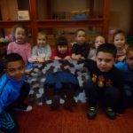 A foglalkozást a „Van nekem egy álmom” dal meghallgatásával kezdtük.Ezután megbeszéltük a hét témáját, a „Medve hetünket”.Kitűztük a feladatainkat, céljainkat a hétre, és megbeszéltük miket fogunk készíteni.Ezután Varázshópelyhek játékot játszottunk.A gyerekek izgalommal készítették napról-napra a medve barlangot, medvéket, medve fejeket.A téma lezárásaként a Boldogságvárunk 5. lépcsőfokára felragasztottuk a célok elérésének jelképét.