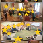 A „Rongybabává válok” játék különösen tetszett nekik, hiszen játékosan tanultak meg pihenni. A szívecske körbeadása közben jól érzékelhető volt az egymásra figyelés és az érzelmi kapcsolódás erősödése. A mondóka közös elmondása során vidáman, mosolyogva ismételték a mozdulatokat.