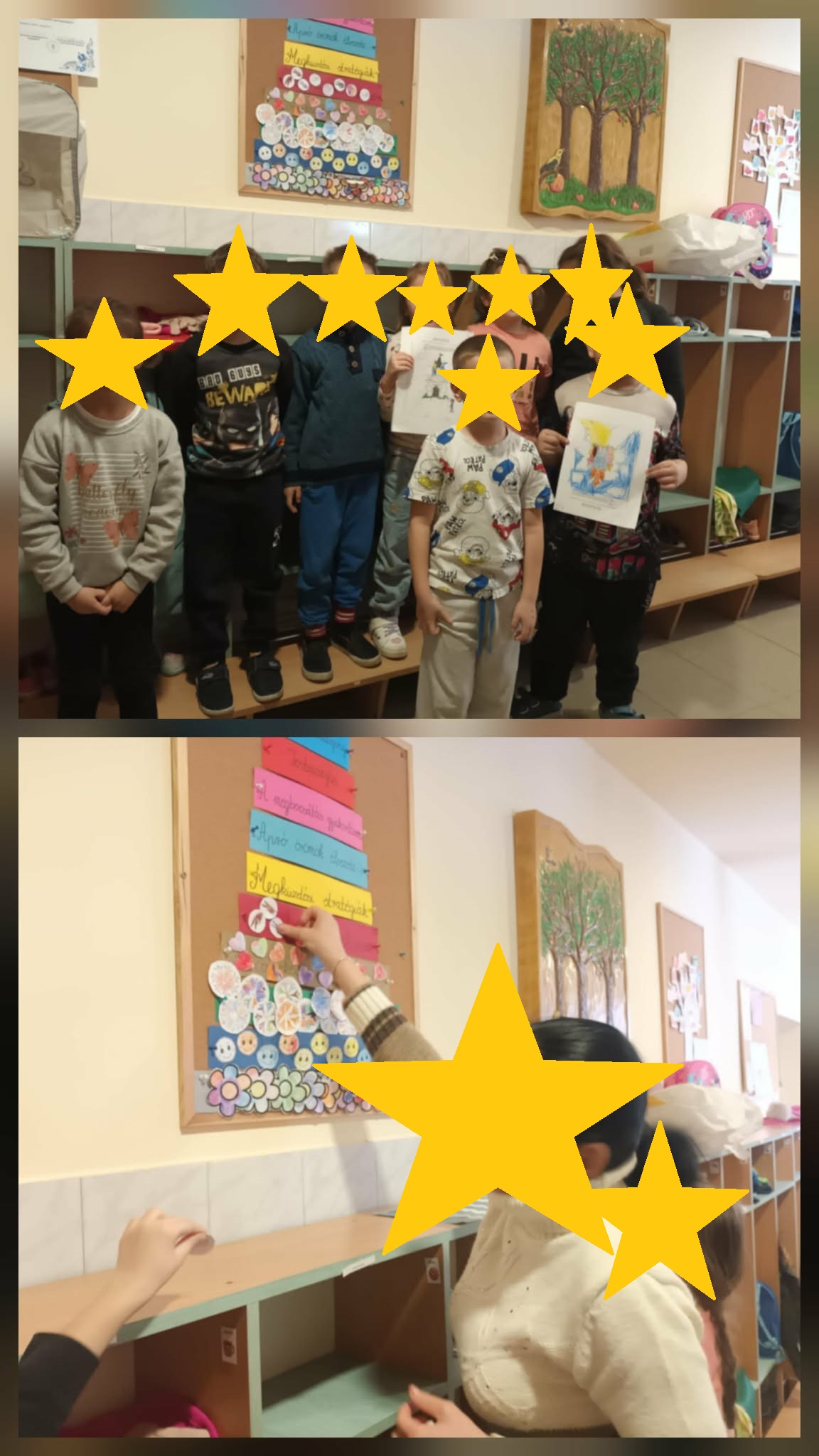 A lezárás során a virágforma kiszínezése és a jel elhelyezése nagy büszkeséggel töltötte el őket. A boldogságmondóka ismétlése közben felszabadult öröm és vidámság áradt a csoportban.